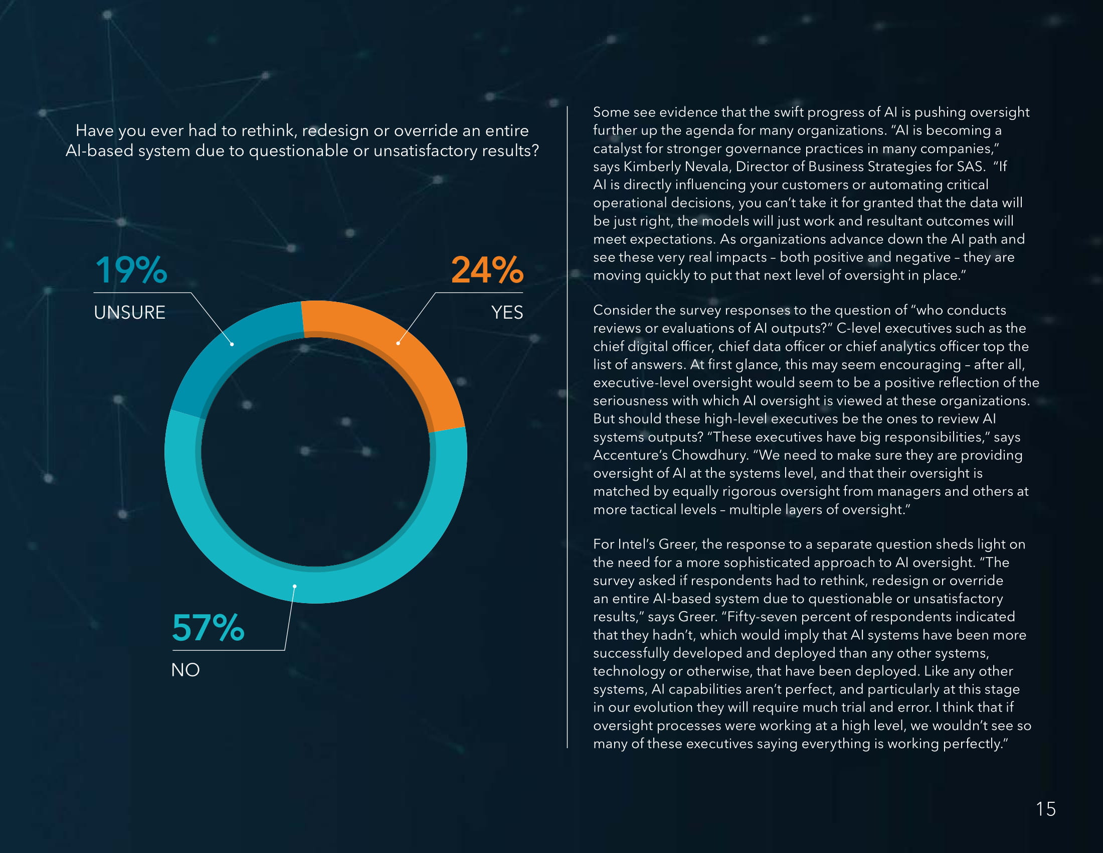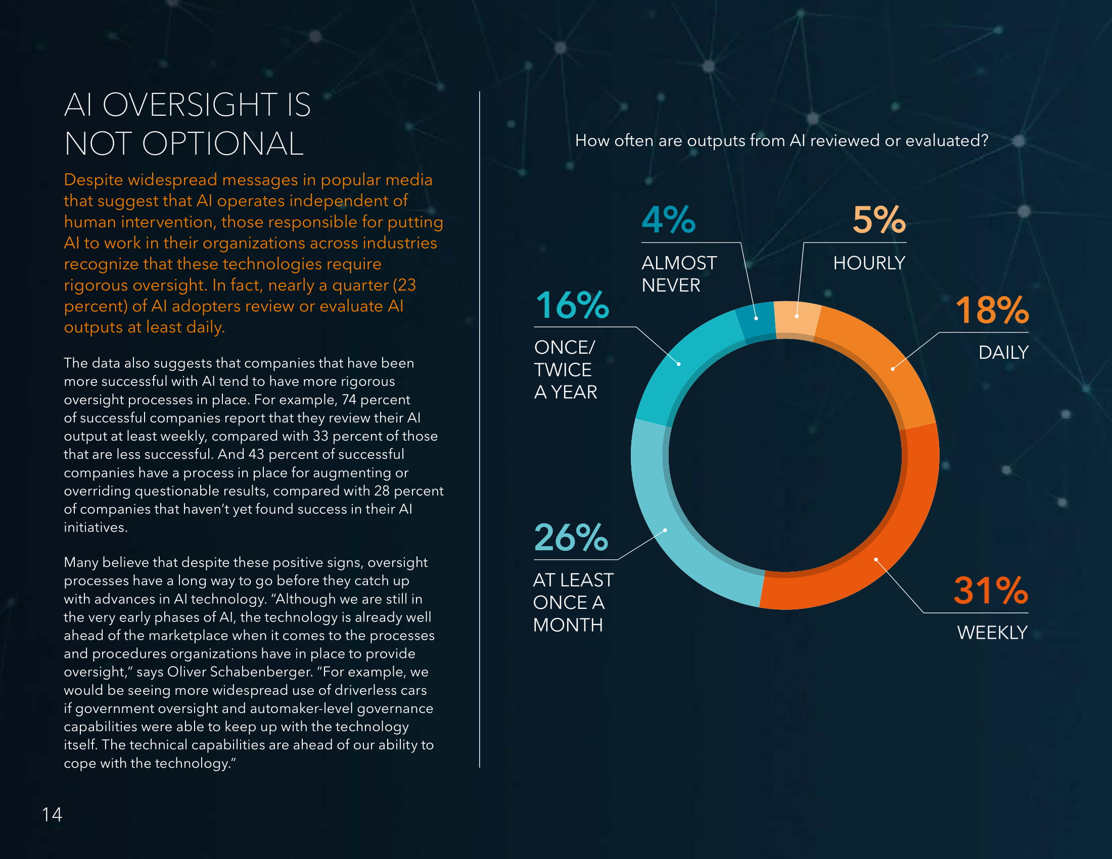 人工智能的领导者正在制定流程,以审查启用人工智能的系统的输出、覆盖,并更多地指出人工智能成熟的新水平。