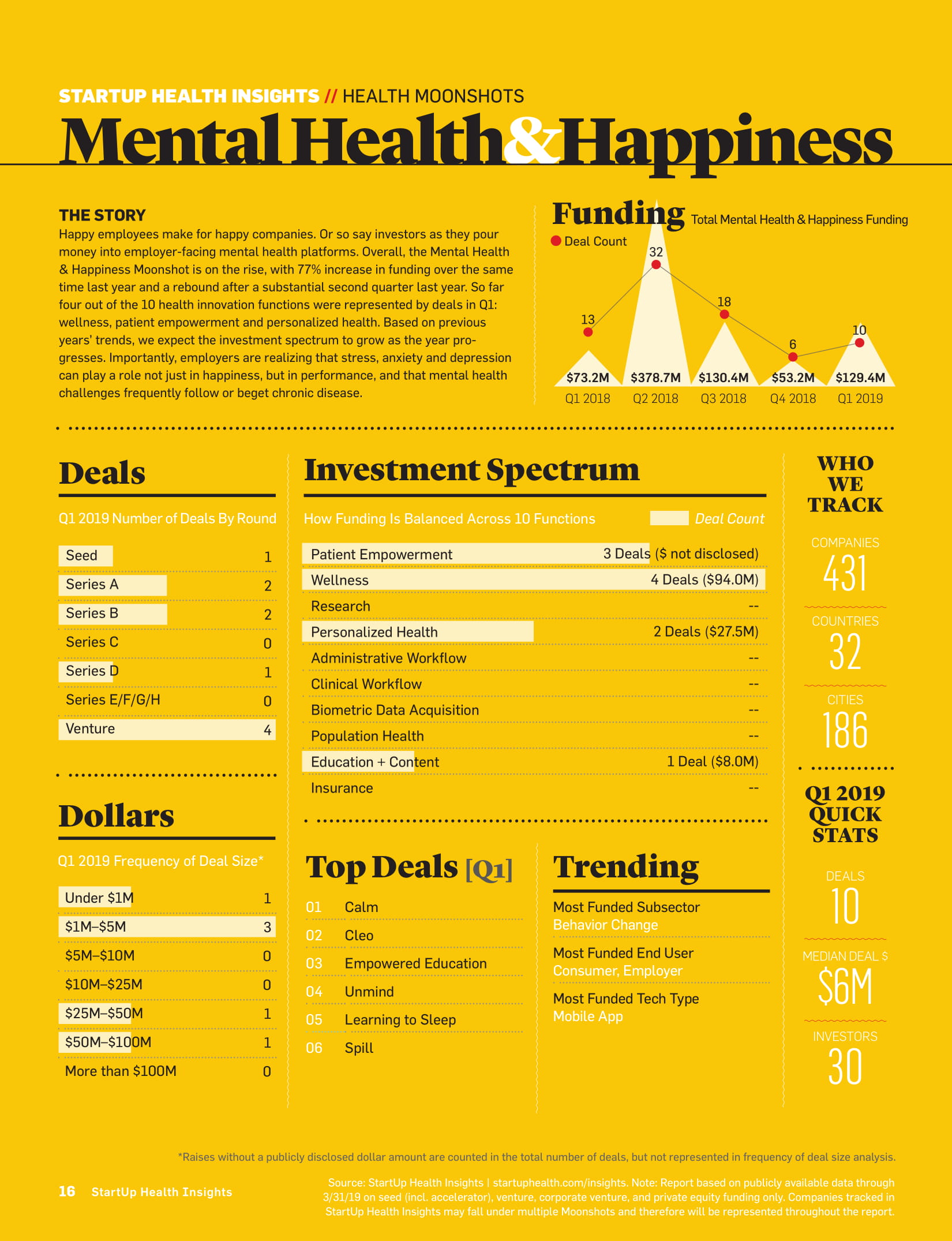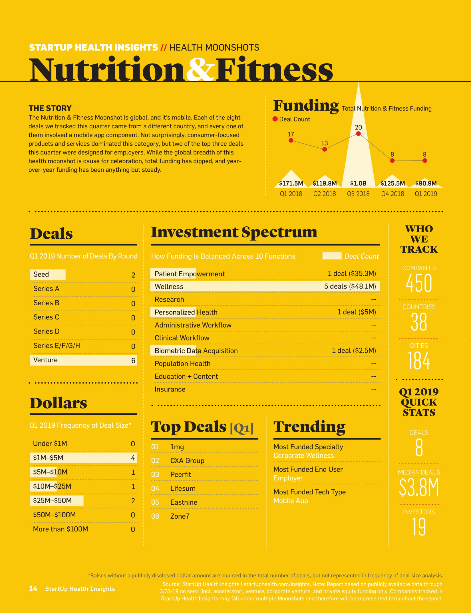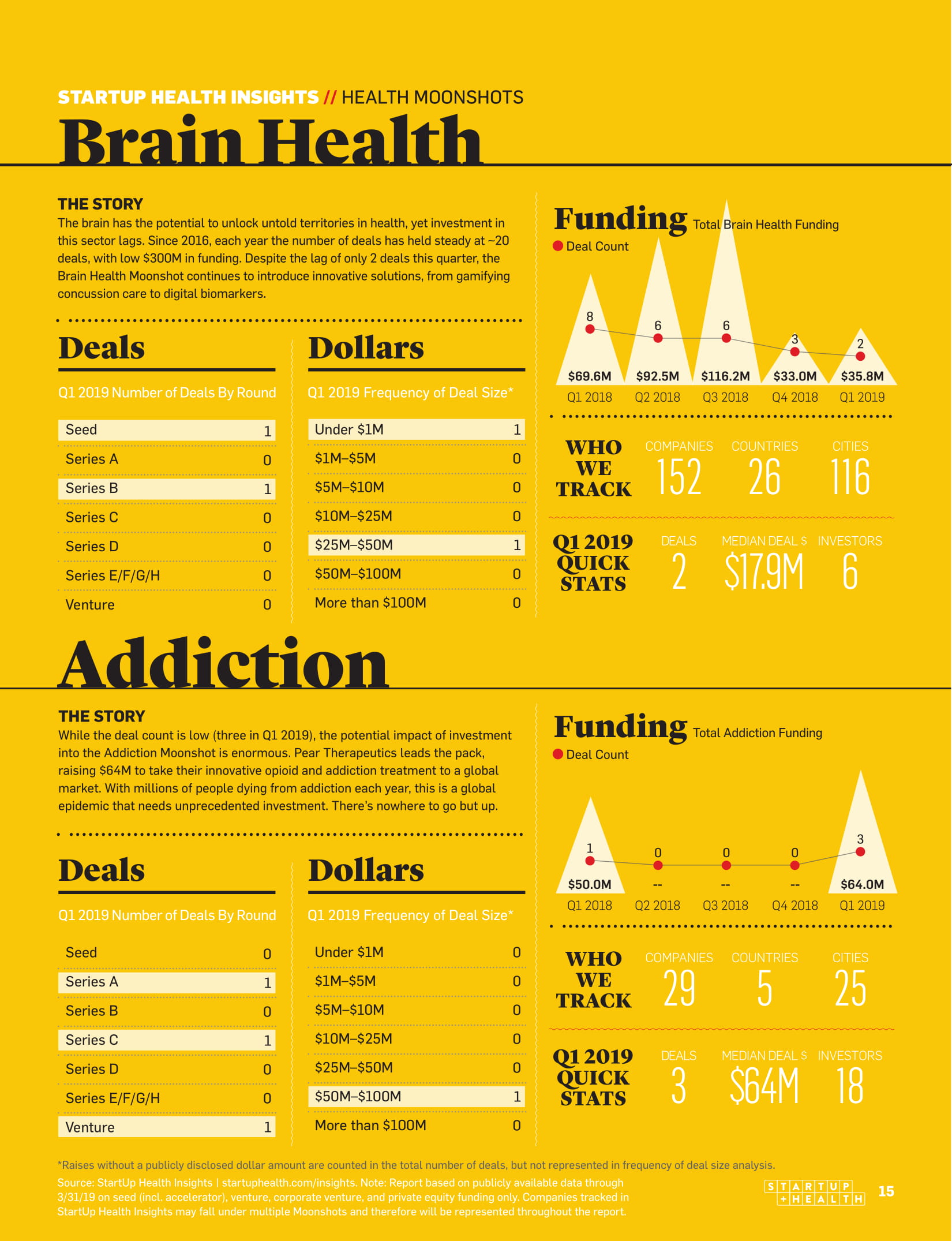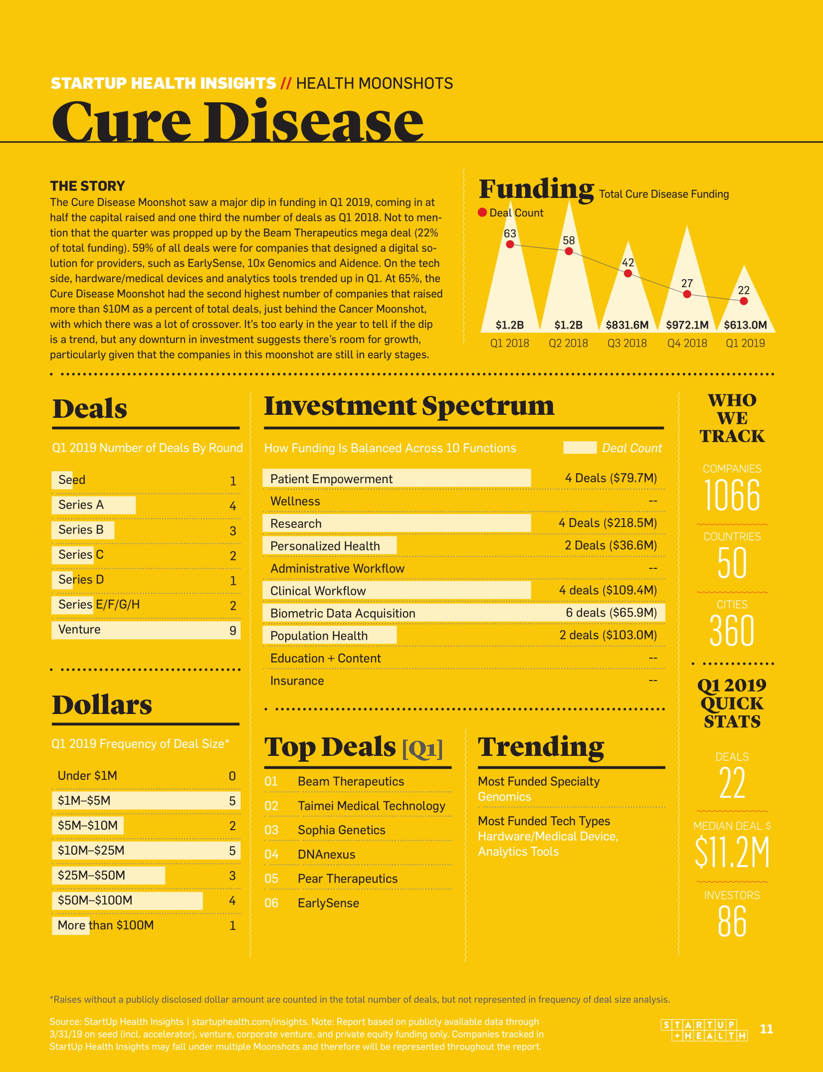 与2018年第一季度相比,女性健康Moonshot融资开始表现强劲,8笔交易中筹集了9160万美元,前一年同期只有780万美元。2018年该领域共有20笔交易。