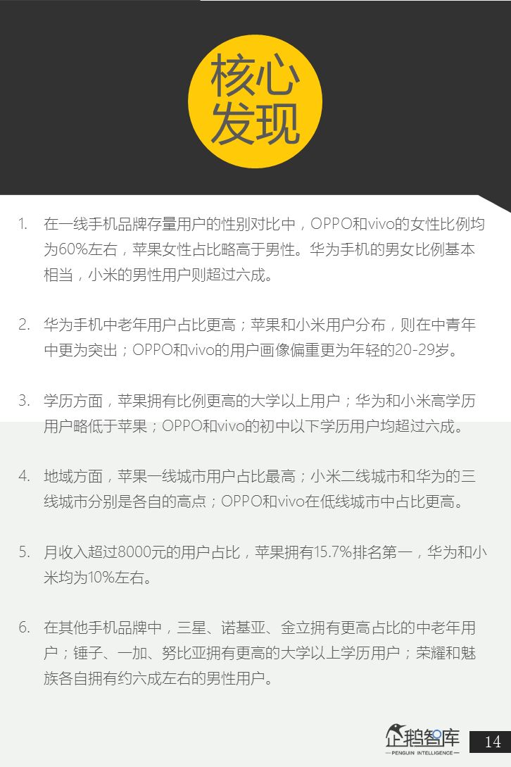 - 华为、苹果、小米、OPPO等品牌的存量用户,有哪些特征?
