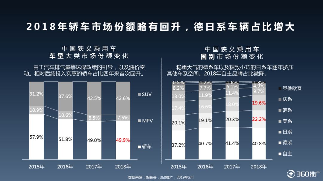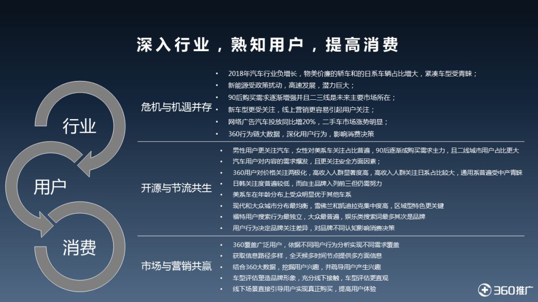 汽车市场在经历了多年的高速增长、平稳后,我们发现,2018年汽车产销放缓,对于车企来说,这是危机与机遇并存的时刻,无论是行业表现、车型关注或是用户年轻化,都在无形的变化中。那么接下来,一起来看最新的2019《360汽车行业趋势分析》报告,了解行业、用户及未来增长点。