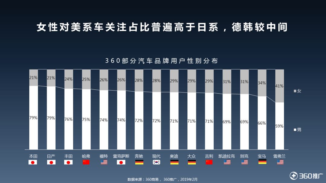 女性对美系车关注占比普遍高于日系