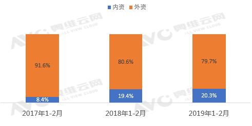 随着时代的发展,精装房越发被消费者广泛认可。越来越多的品牌商将目光投向了工程地产精装修市场,谁都想分得一杯羹。2019年1-2月精装卫浴市场配套部品品牌中,除浴室柜外TOP5品牌占据市场份额均超过75%,且均为外资品牌,相比同期稳中稍有增长。从品牌性质看,2019年1-2月精装修卫浴市场配套项目中,外资品牌规模占比79.7%,内资品牌规模占比20.3%。外资品牌地位仍然稳固,备受开发商青睐。科勒、TOTO、摩恩、乐家、美标等外资品牌依然占据主力地位,以九牧、惠达、恒洁为代表的内资品牌在精装修市场较为薄弱。但从近两年数据中,可以看到国内品牌市场份额呈增长趋势。