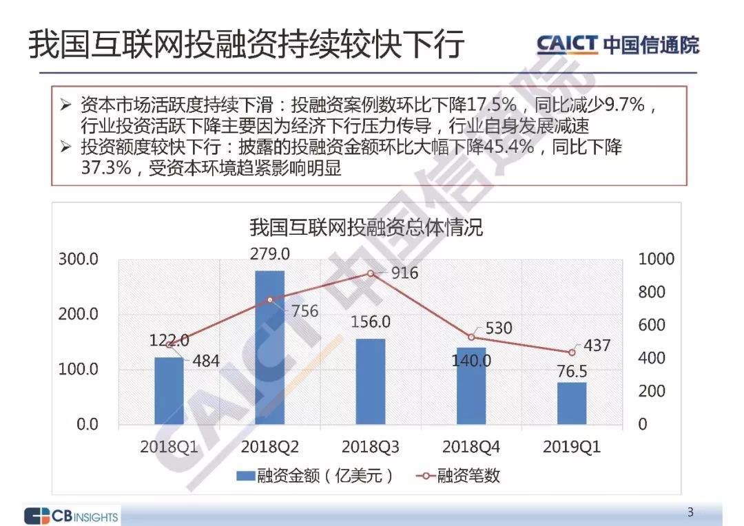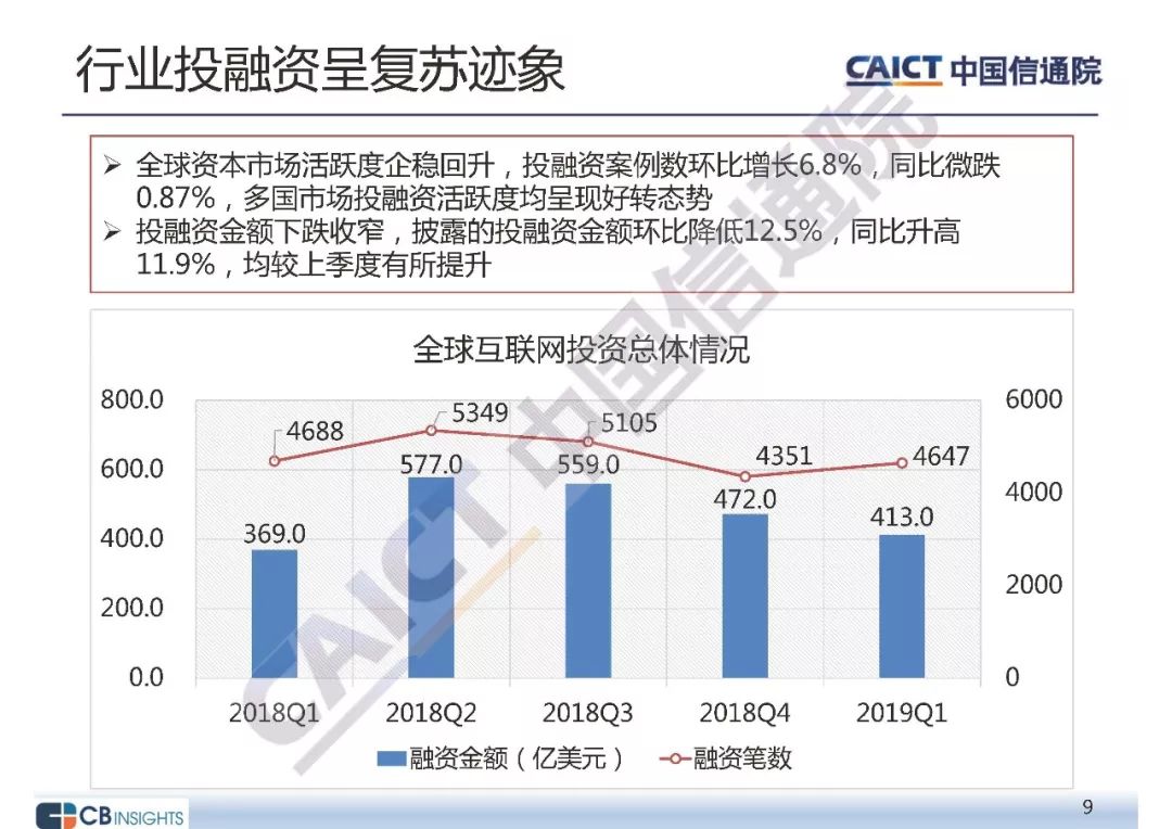 中国信息通信研究院:2019年一季度互联网投融资运行情况 日前,中国信息通信研究院政策与经济研究所互联网运行分析团队发布了《2019年一季度互联网投融资运行情况》报告。 报告构建了互联网行业投融资研究框架,借助CB Insights的数据库,深入挖掘我国和全球行业投融资整体态势及重点领域情况,为行业趋势预测、热点问题预判提供重要参考。 报告全文 更多阅读:中国信通院:2023年一季度互联网投融资运行情况中国信通院:2022年四季度互联网投融资运行情况研究报告中国信通院:2022年三季度互联网投融资运行情况中国信通院:2023年二季度互联网投融资运行情况玩转互联网投融资–信息图国家邮政局:2018年5月邮政行业运行情况国家邮政局:2018年2月邮政行业运行情况工信部:2020年1-2月通信业经济运行情况中国人民银行:2020年9月份金融市场运行情况中怡康:2019年6月中国家电市场运行情况汽车工业协会:2019年7月汽车工业经济运行情况国家邮政局:2019年一季度邮政行业运行情况2018年8月广东省基础电信业运行情况国家统计局:2019年1月中国采购经理指数运行情况工信部:2016年1-11月电子信息制造业运行情况