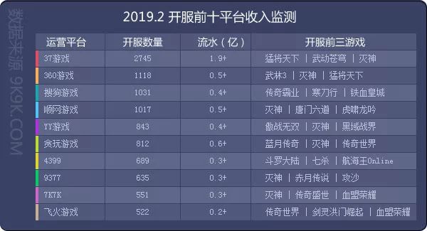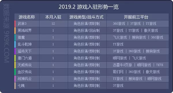 综述:本月因天数较少与涵盖春节期间等方面影响,因此开服与流水数据显得中规中矩,并不十分突出。据9K9K网页游戏开服数据统计,本月只有10款新游入驻各大一线平台,其中不少新游正在蓄势待发,期待下月的惊喜!