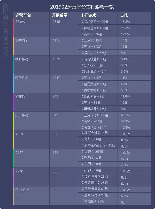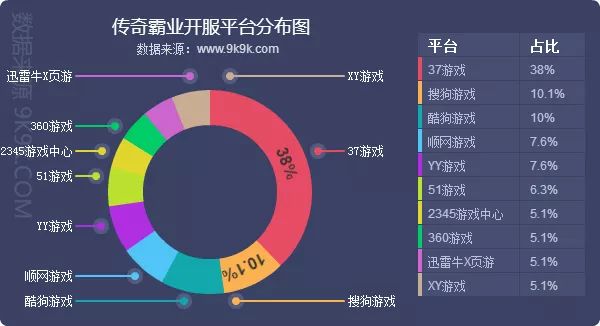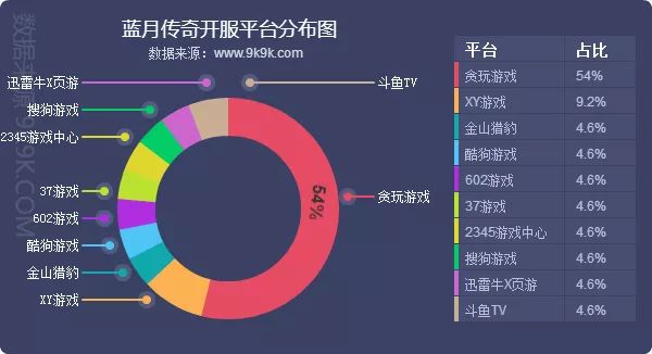 点评:本月《蓝月传奇》开服总数较上月缩减8.8%,新增分布占比平台602游戏、斗鱼TV。