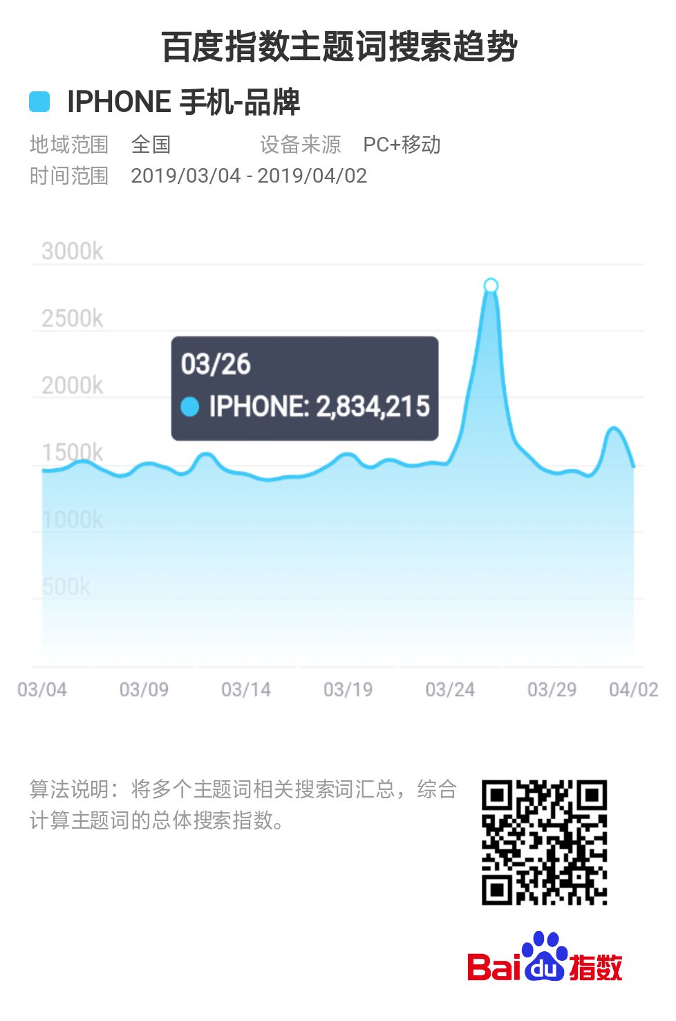 iPhone以超高数据领先其他品牌,占领3月月榜第1。从指数数据来看,iPhone的数据在3月26日来到峰值,正值苹果一年一度的春季发布会。在本次发布会上,iPhoneSE2并没有如约到来,但是iPhone TV+和iPhone Card等将在今年晚些时候亮相。