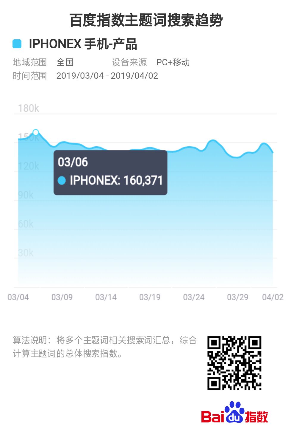 iPhoneX这款发布于2017年的手机,一年半之后还拥有着如此高的搜索指数,是难得的。作为iPhone系列的全面屏手机,iPhoneX自从问世就备受关注,随后的iPhoneXs系列的上市,iPhoneX凭借自身的价格优势,较高的性价比,一直在产品榜前列。