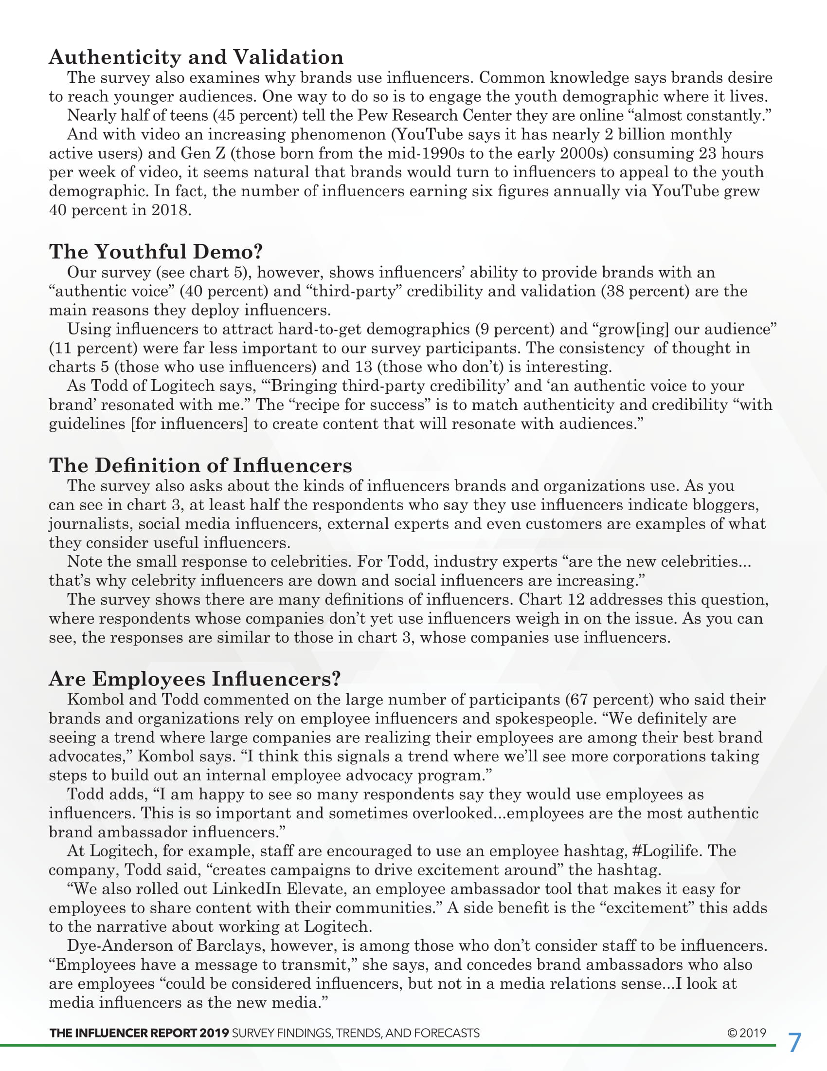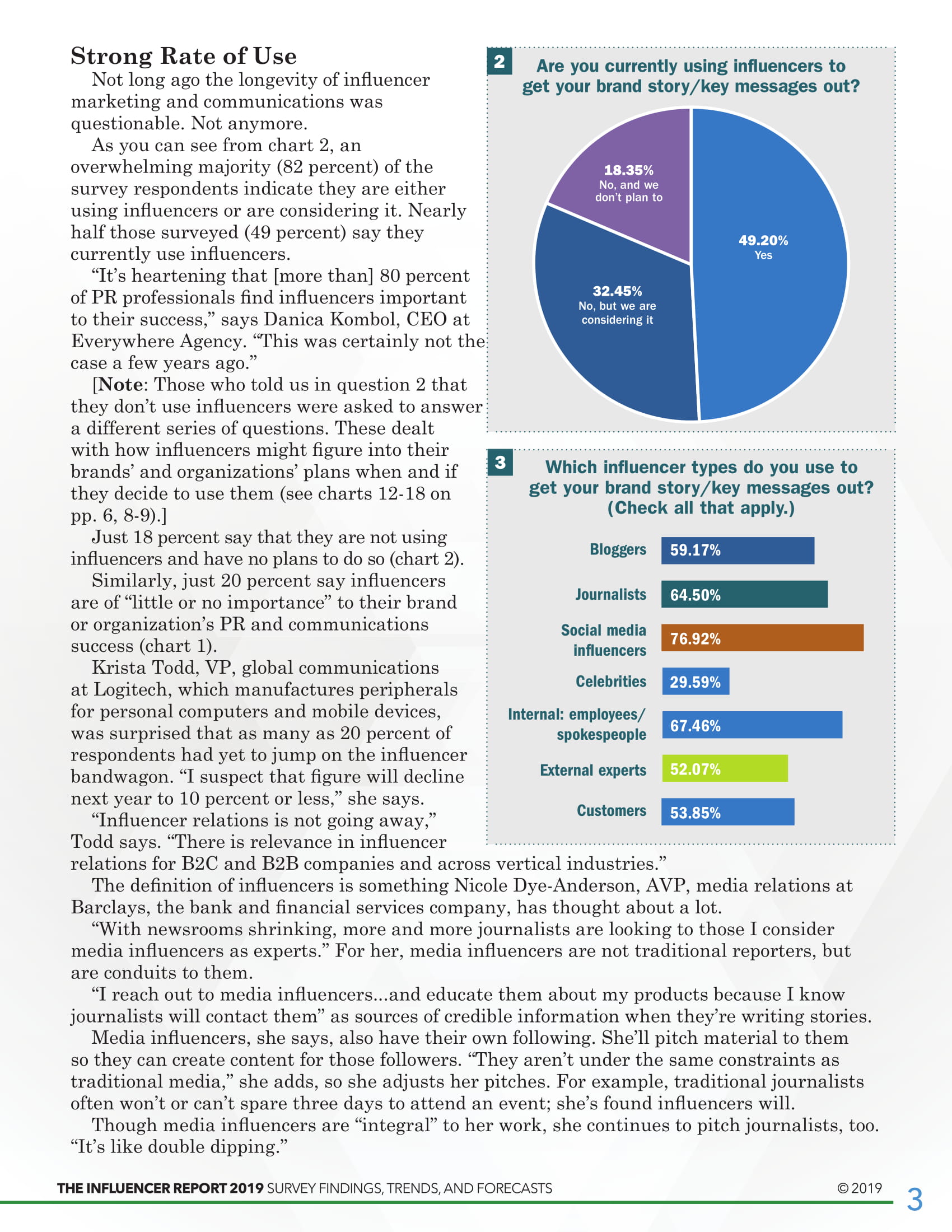 至于使用哪种意见领袖营销,最常见的类型是社交媒体意见领袖(76.9%)。排在第二位的是内部员工和发言人,2/3的受访者利用意见领袖员工向外界传达品牌信息。