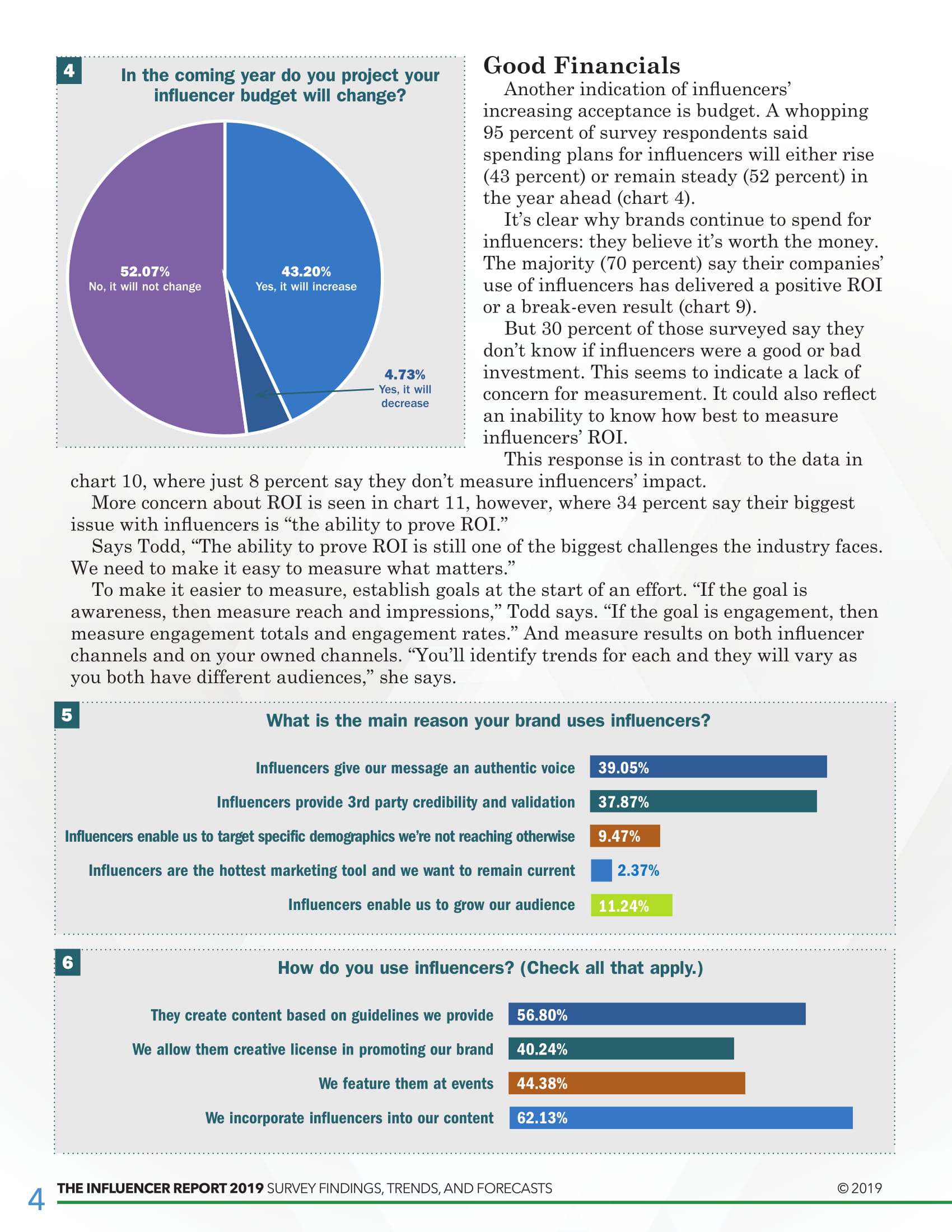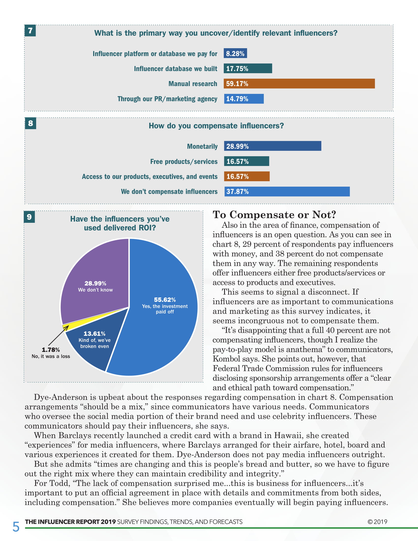 尽管半数以上的受访者(55.6%)表示意见领袖为他们带来了积极的投资回报,但没有迹象表明这一细分市场在付费广告之间有什么区别。