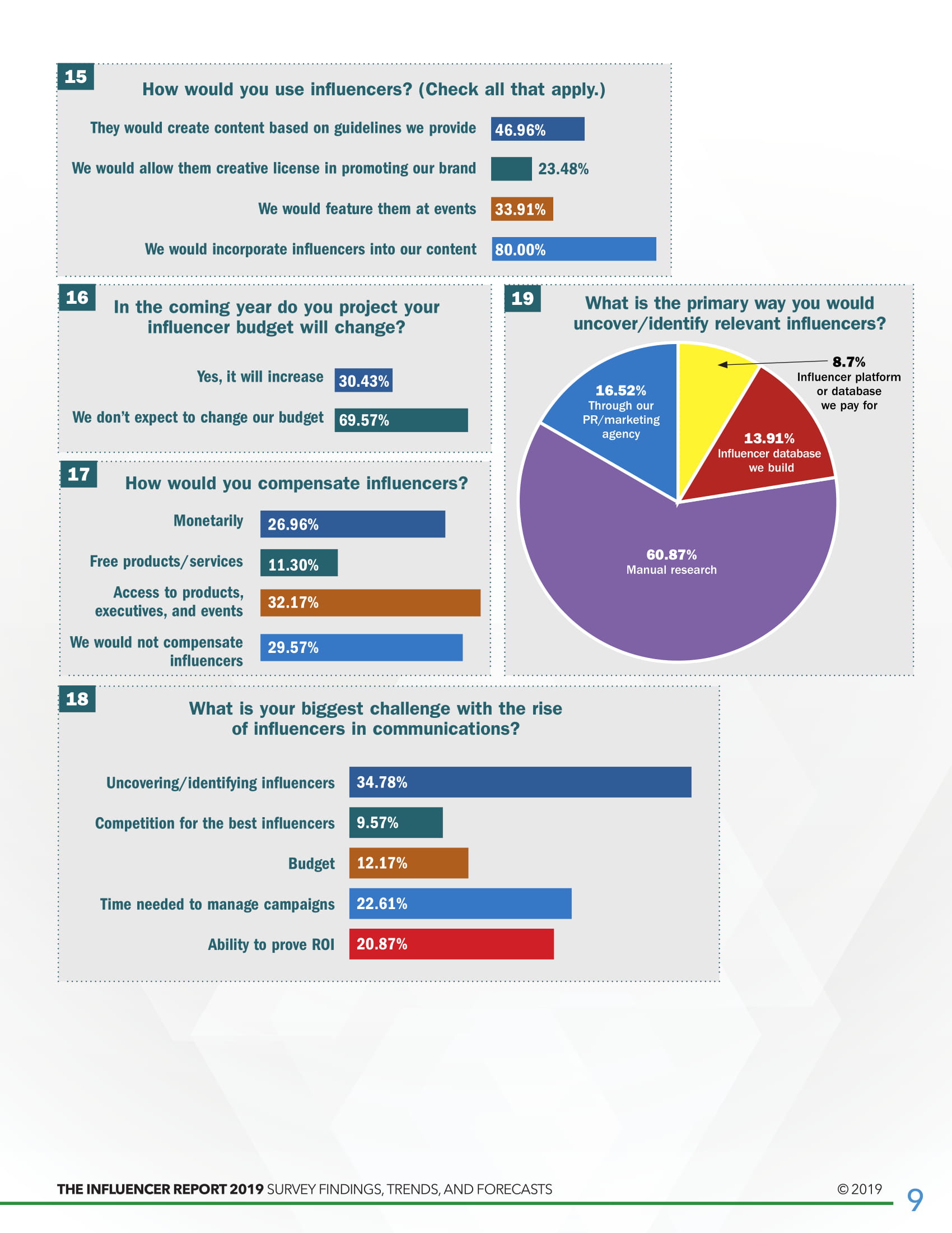 - 大约6/10的受访者(59.2%)利用手动研究来发现合适的意见领袖。