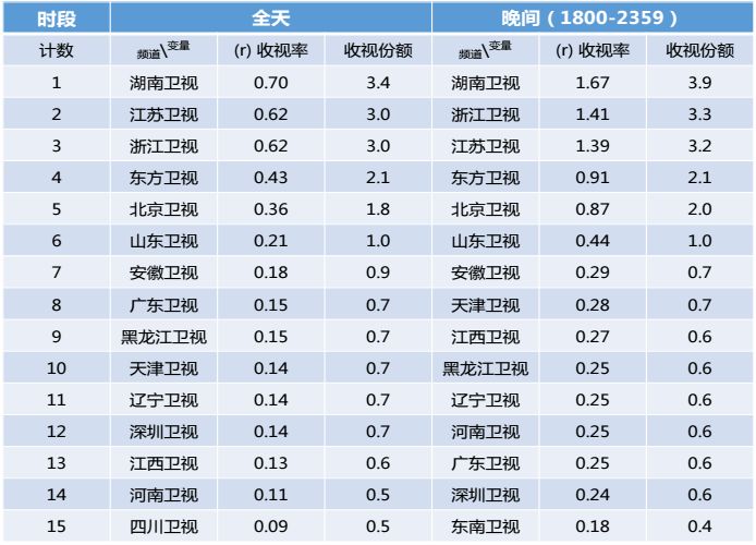 分时段频道排名方面,湖南卫视继续在各时段保持优势,江苏卫视、浙江卫视在本月则凭借强势剧目的播出,在全天及晚间均进入前三。从数据的绝对值来看,3月TOP3卫视之间差距有所缩小。