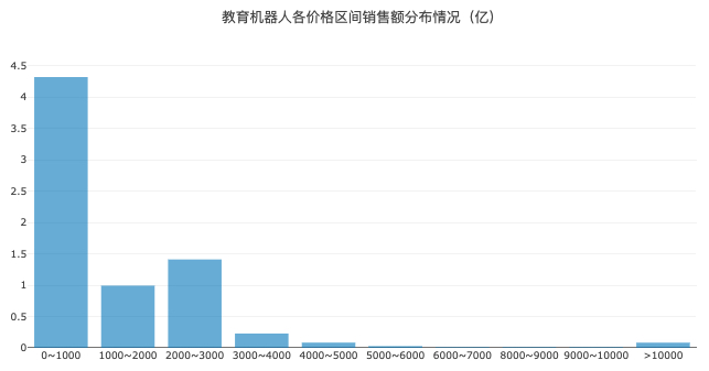 而价位在>10000元的智能教育机器人,10-49cm高度销售额最高,几乎是0~1000元教育机器人高度的2倍。