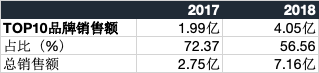 与2017年相比,2018年京东平台上智能教育机器人销售额TOP10品牌在总体销售额中的占比由72.37%下降至56.56%,说明该市场的品牌集中度在降低,竞争趋于激烈。