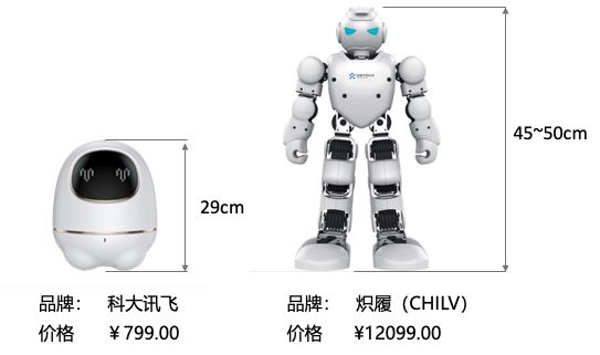 综上所述,万元级智能教育机器人的体型更大,运动形式更加灵活,有着更多的自由度,控制方式上“全语音控制”较为普遍,适用年龄也更广泛。