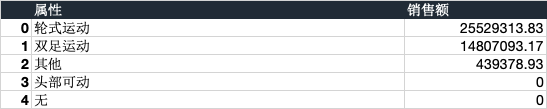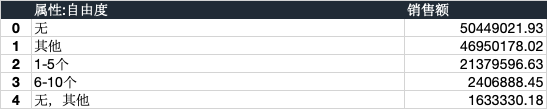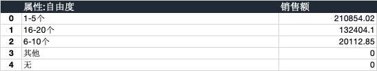 我们研究一下两档价位的教育机器人在自由度上的差异。首先看一下0~1000元商品的自由度属性销售额TOP5: