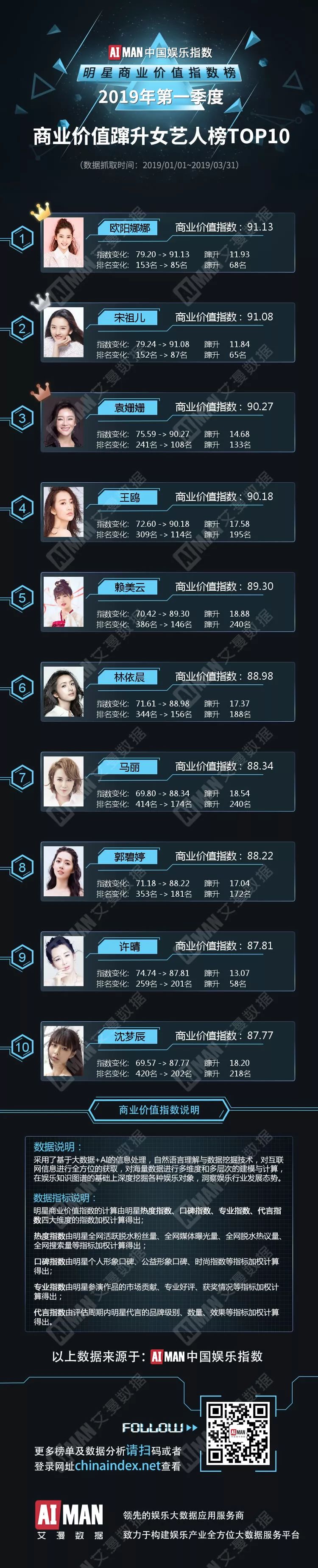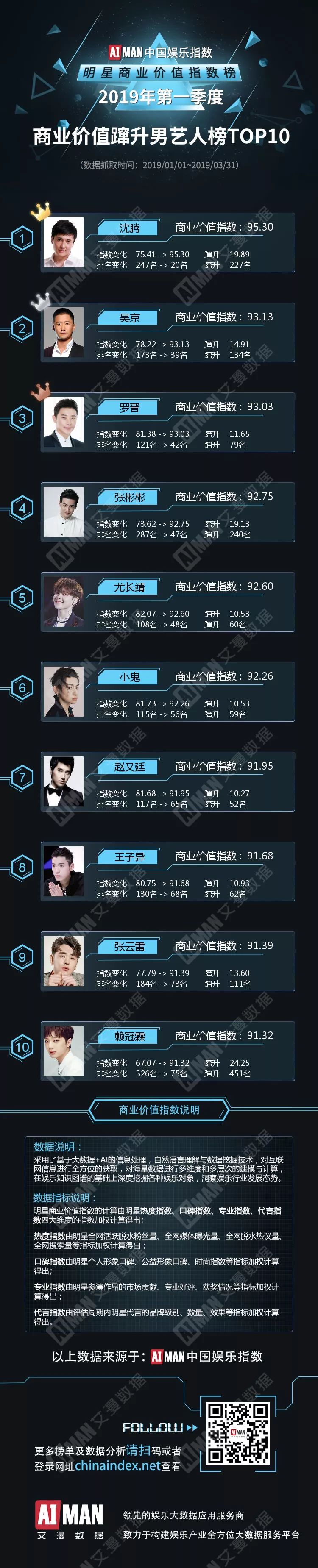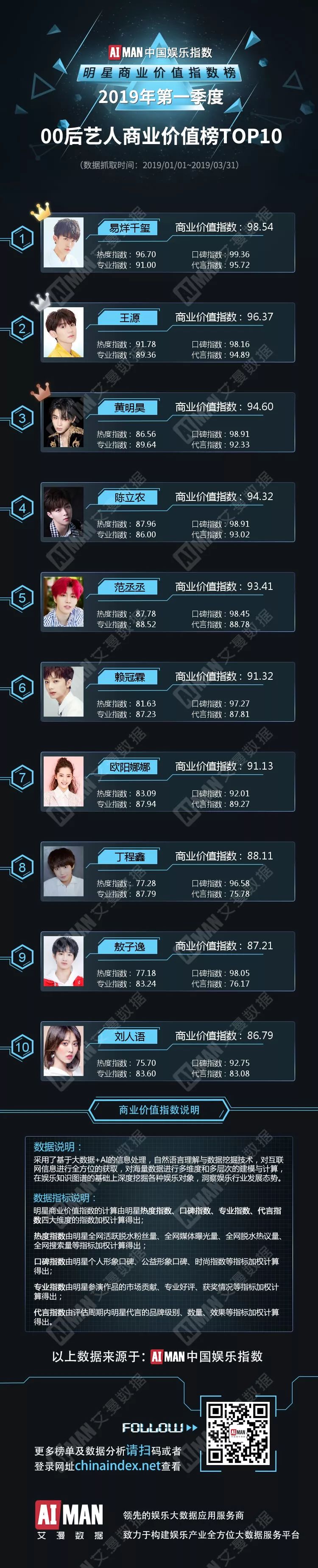 艾漫数据:2019年第1季度明星商业价值系列榜单 【出道新人商业价值榜】 【潜力艺人商业价值榜】 【商业价值蹿升男艺人榜】 【商业价值蹿升女艺人榜】 【00后艺人商业价值榜】 【90后艺人商业价值榜】 【80后艺人商业价值榜】 更多阅读:腾讯娱乐&艾漫数据:2015年腾讯娱乐白皮书–明星篇腾讯娱乐&艾漫数据:2015年腾讯娱乐白皮书–综艺篇艾漫数据:2019上半年各线级城市泛娱乐受众大数据分析报告腾讯娱乐&艾漫数据:2015年腾讯娱乐白皮书–电视篇腾讯娱乐&艾漫数据:2015年腾讯娱乐白皮书–明星篇腾讯娱乐&艾漫数据:关于90后娱乐选择的22个真相艾漫数据&微博:2018粉丝白皮书艾漫数据:细数2015娱乐圈十宗最艾漫数据:2018年12月10日艺人数据榜艾漫数据:2022年4月艾漫数据代言大盘报告腾讯娱乐&艾漫数据:2015年腾讯娱乐白皮书–音乐篇艾漫数据:2018年11月06日艺人数据榜艾漫数据:国产爱豆的发展现状艾漫数据:2021年8月电影月度大盘报告世界各城市60平米房屋成本