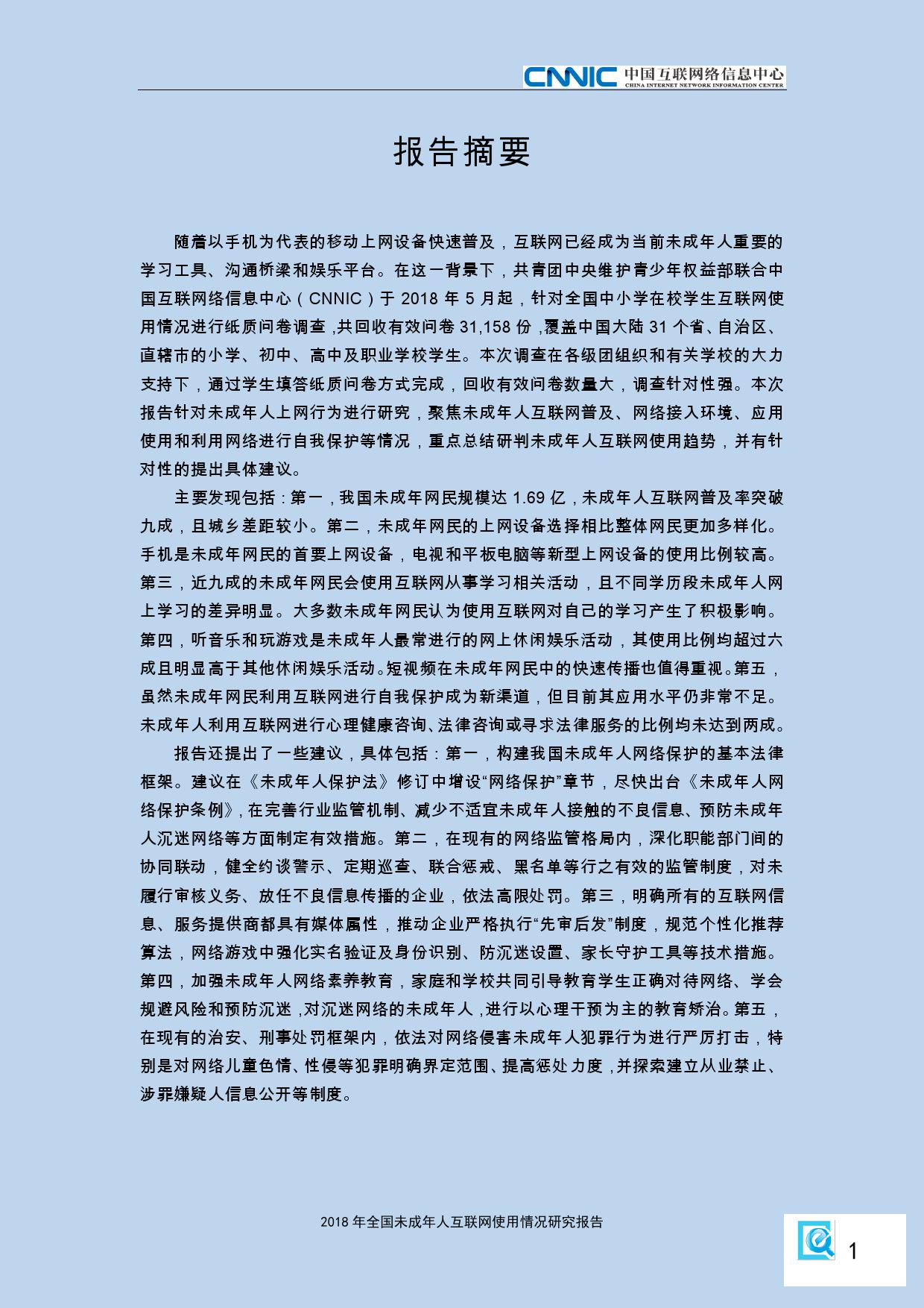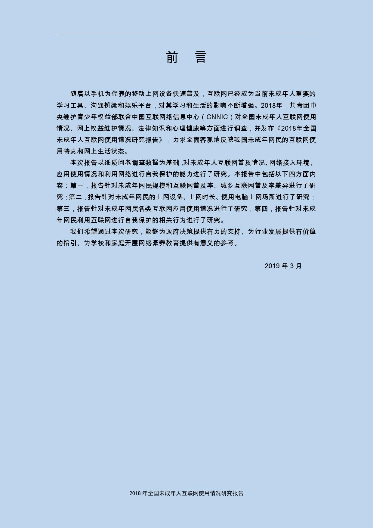 本次报告针对未成年人上网行为进行研究,聚焦未成年人互联网普及、网络接入环境、应用使用和利用网络进行自我保护等情况,重点总结研判未成年人互联网使用趋势,并有针对性的提出具体建议。
