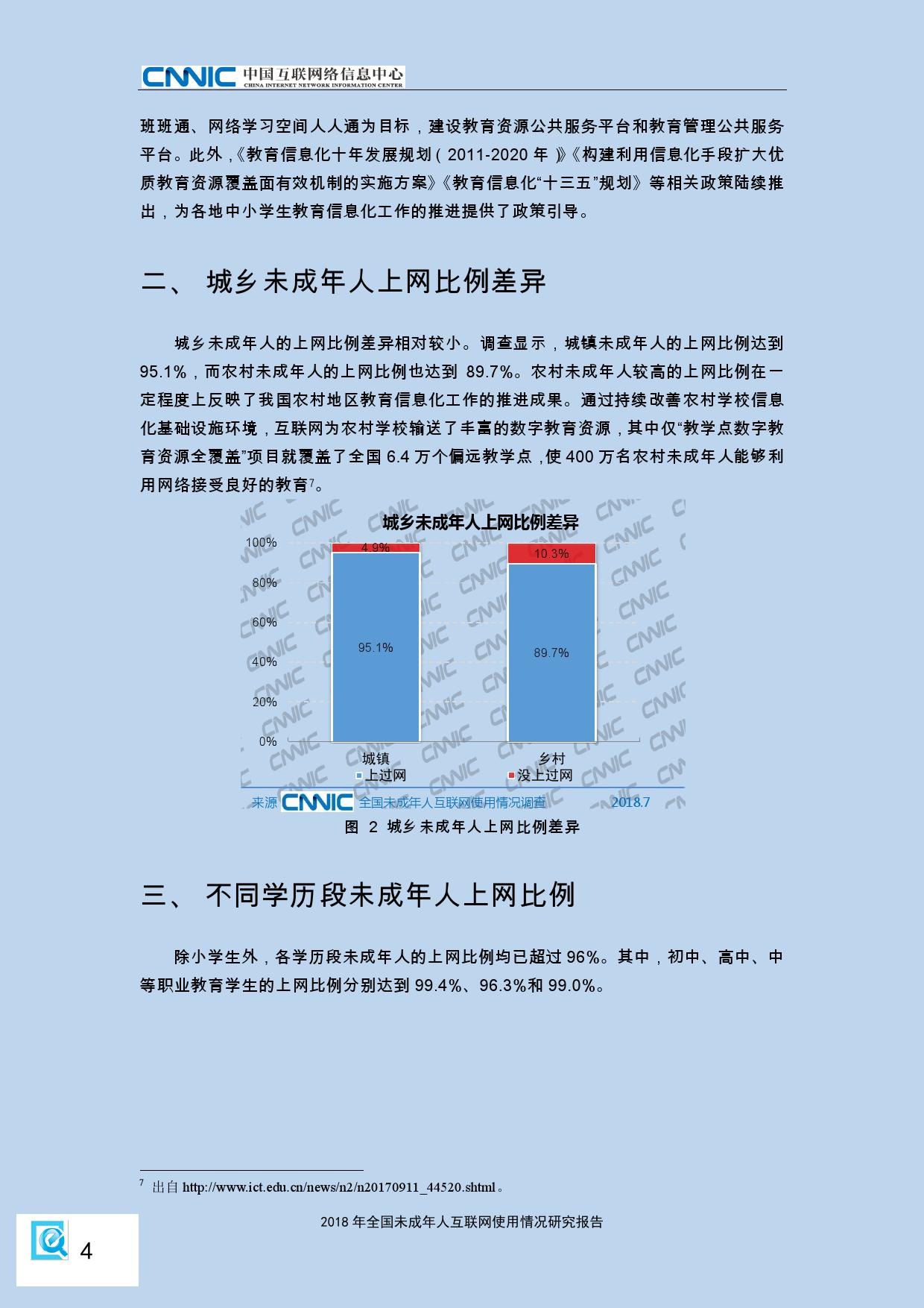 从城乡分布看,城镇未成年人上网比例为95.1%,农村未成年人上网比例为89.7%。