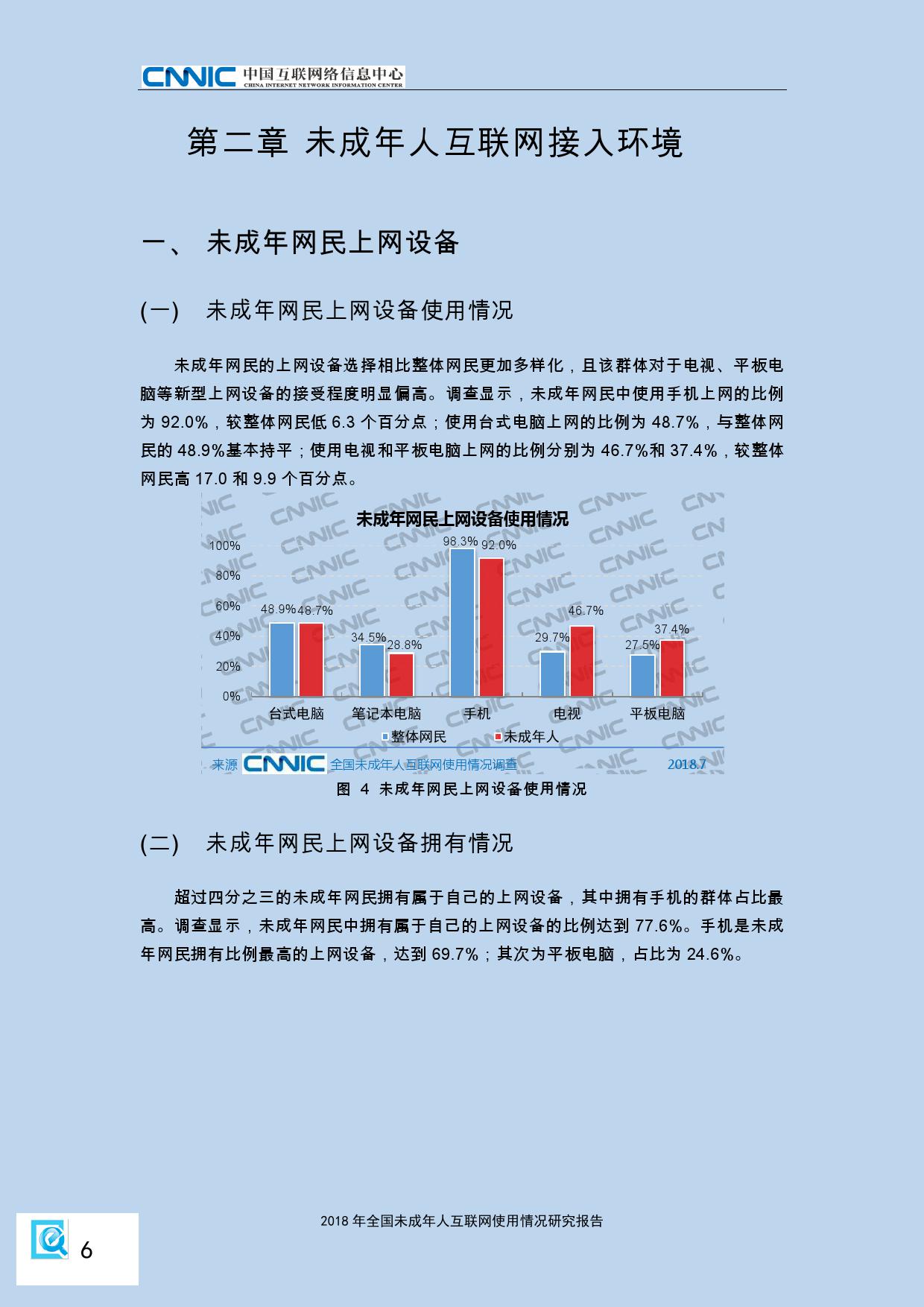 《报告》显示,未成年网民的上网设备更加多样化,使用电脑上网地点主要在家庭和学校。