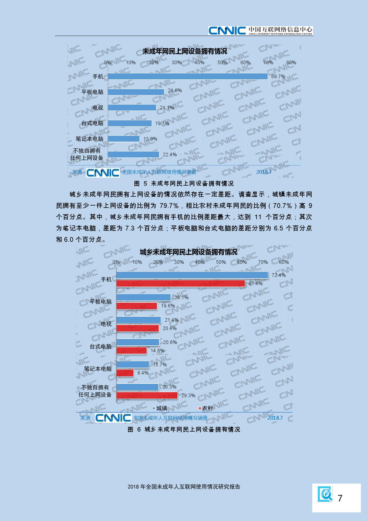 未成年人拥有属于自己的上网设备比例也不低,比如69.7%有手机,24.6%有平板电脑,13.9%有笔记本电脑。