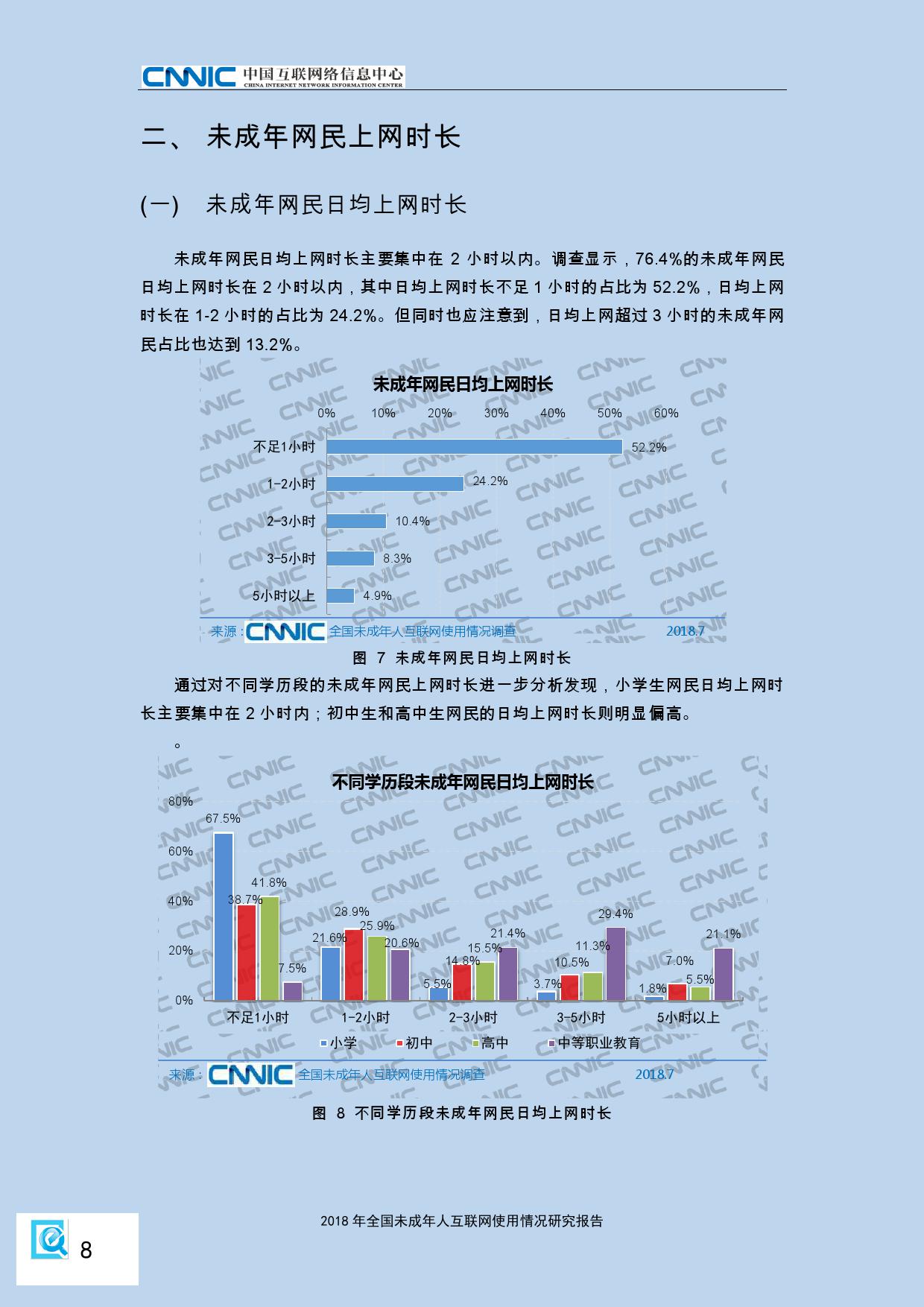 从上网时长来看,76.4%的未成年人日均上网时间在2小时以内,但同时,日均上网超过3小时的未成年网民占比也达到13.2%。