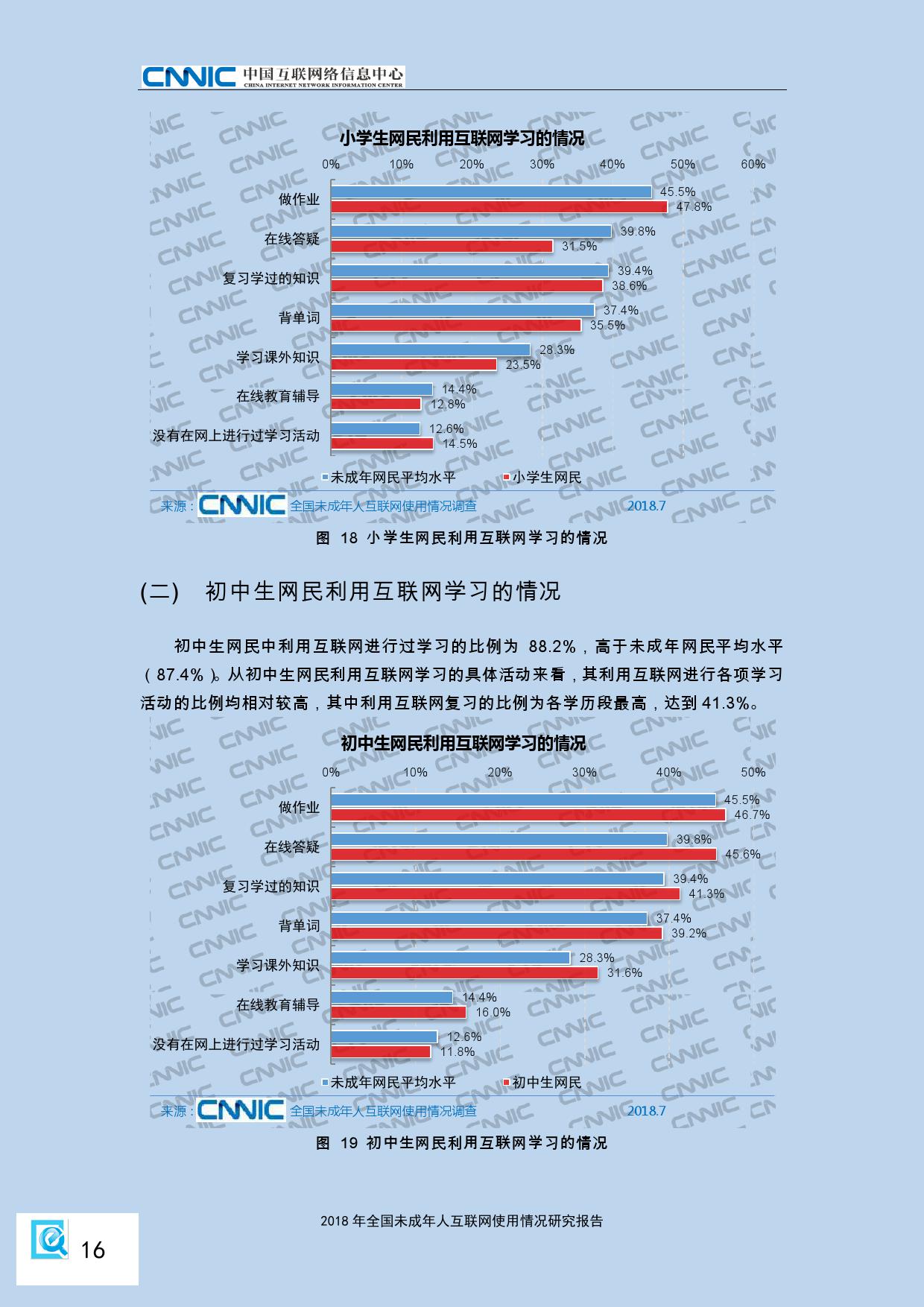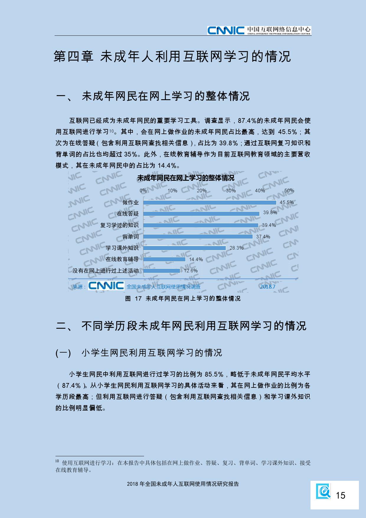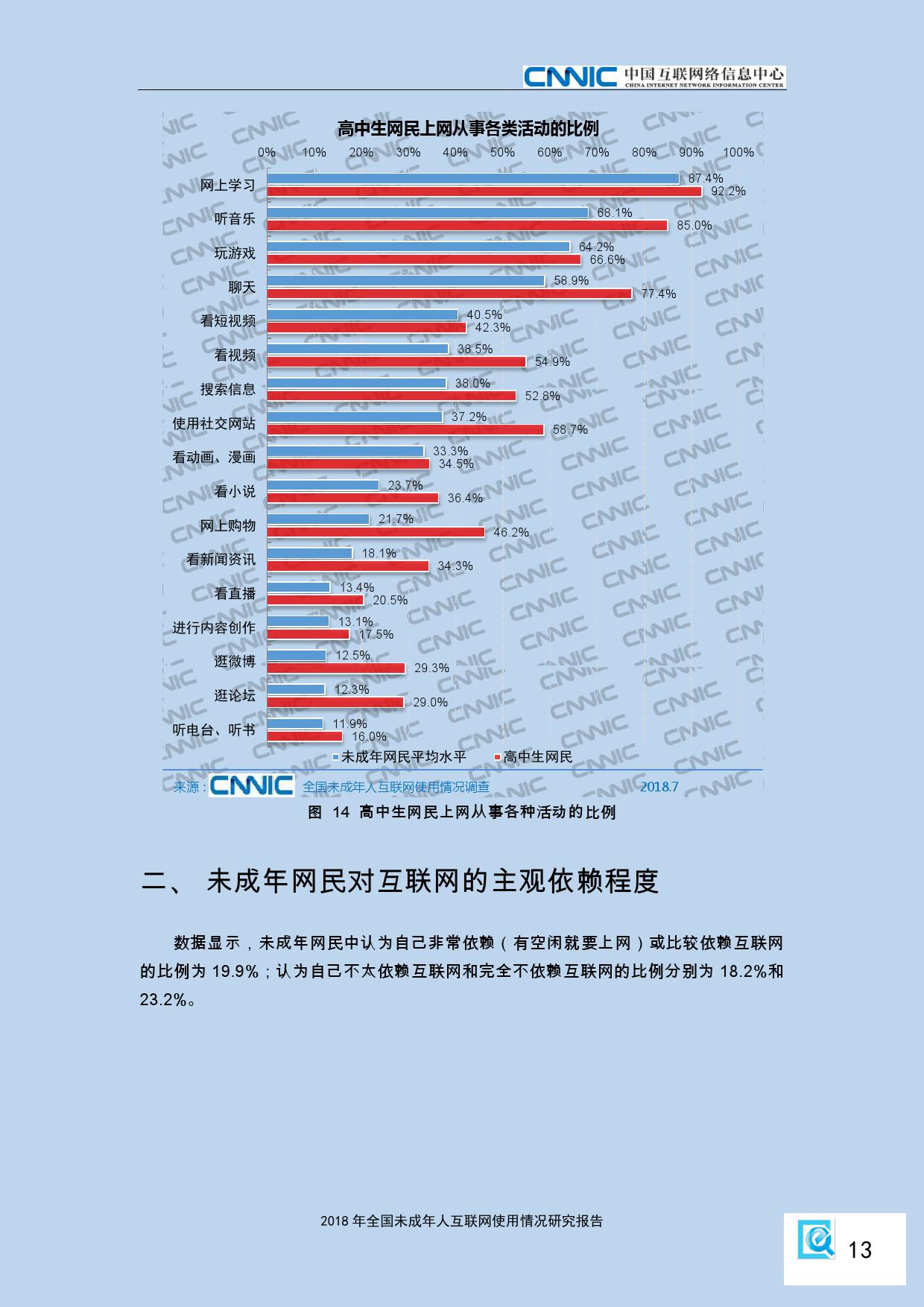 未成年人上网,排在前几位的是利用互联网学习(87.4%)、听音乐(68.1%)、玩游戏(64.2%)、聊天(58.9%)。