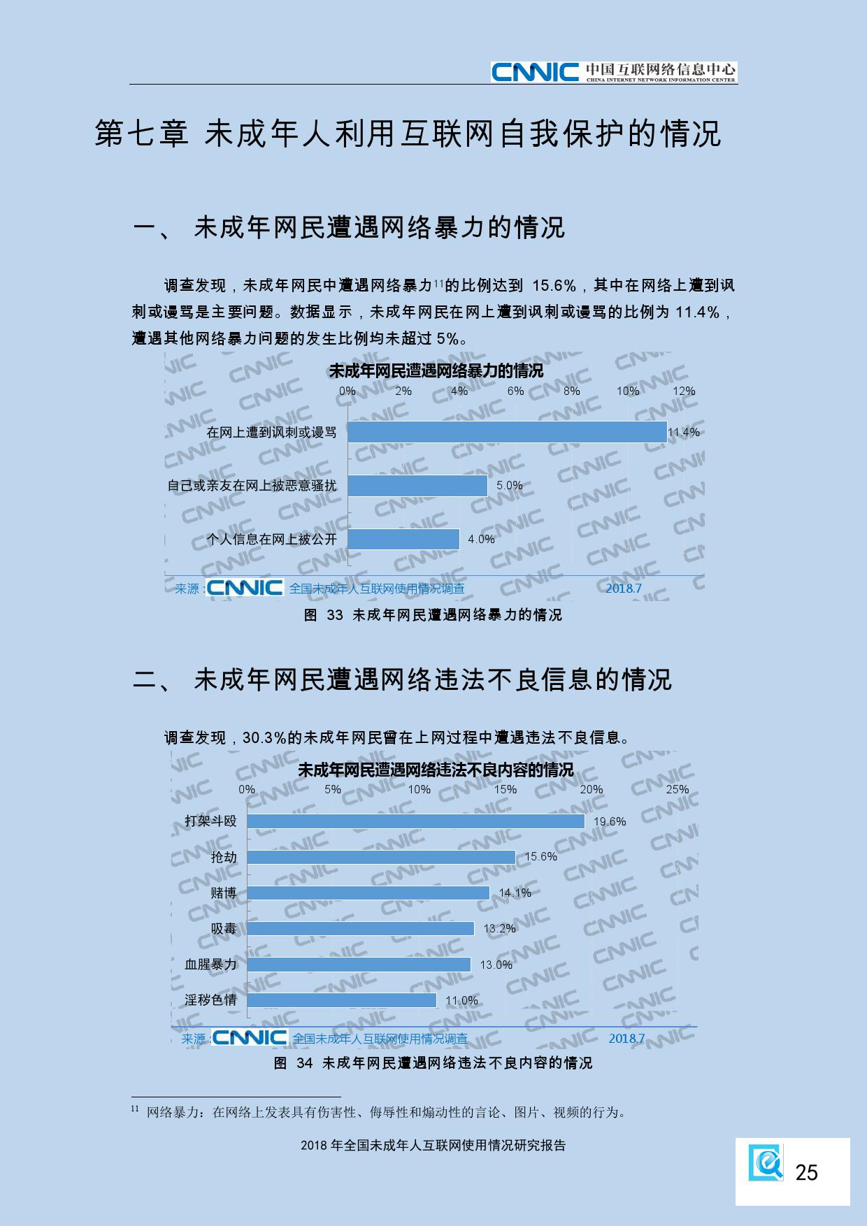 30.3%的未成年人曾在上网过程中接触到暴力、赌博、吸毒、色情等违法不良信息。