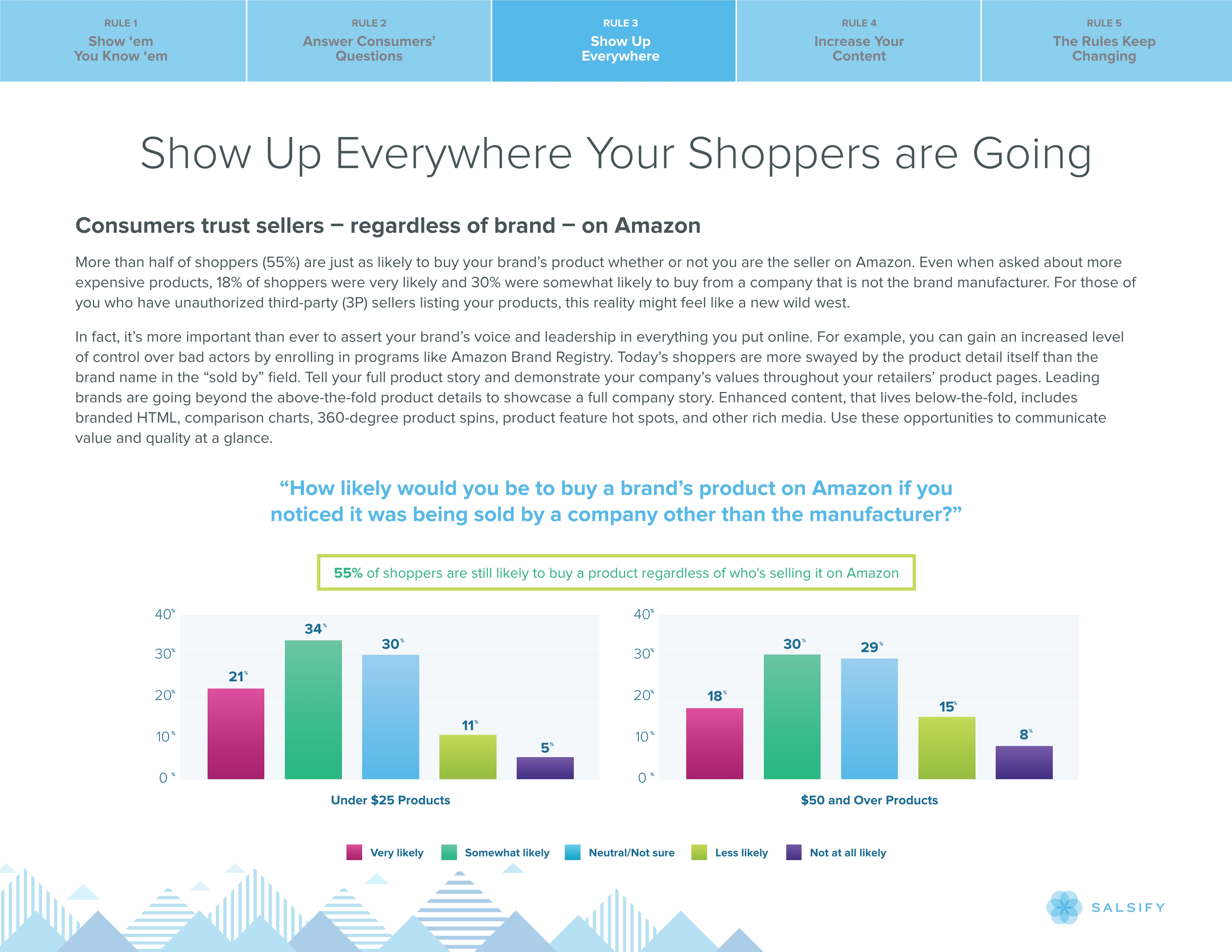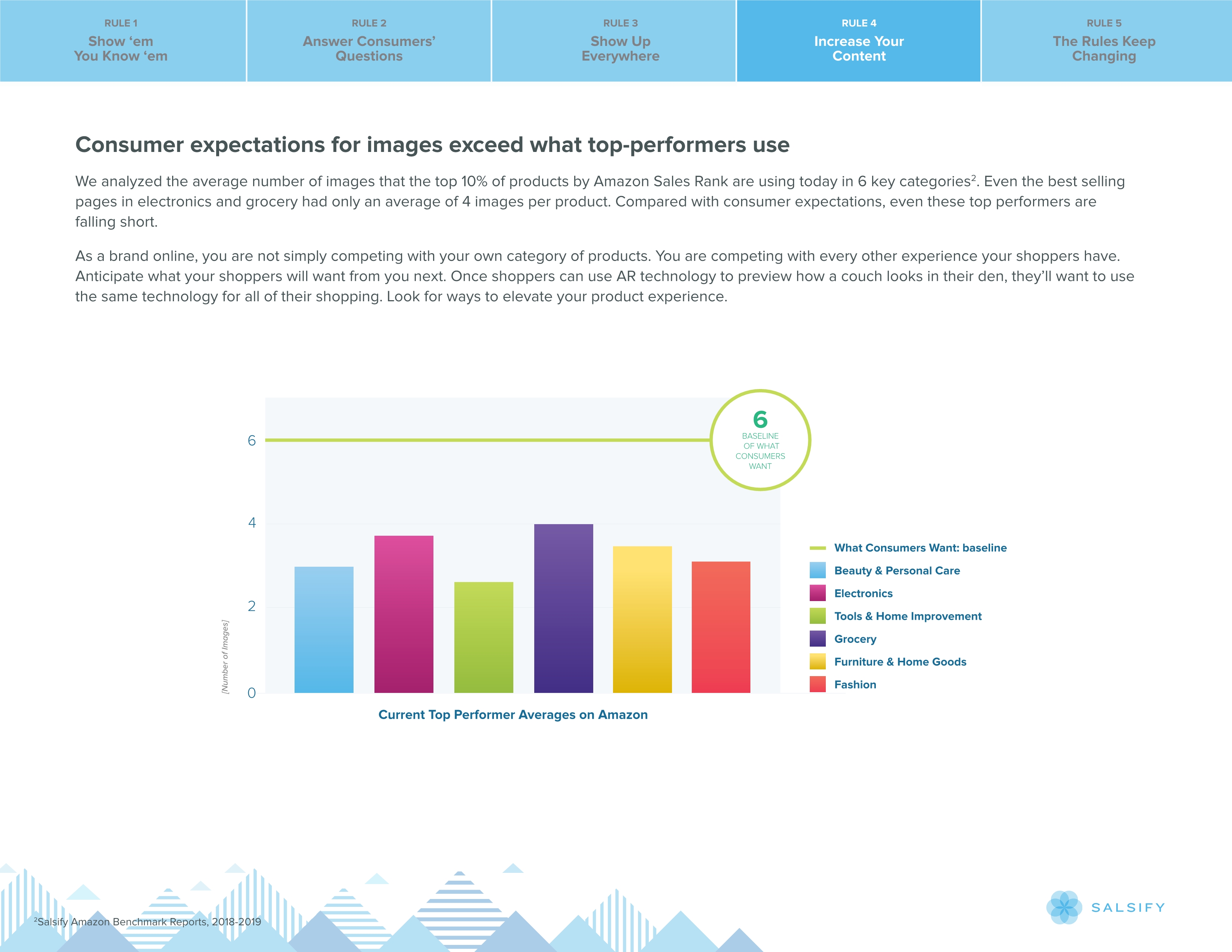 根据产品体验管理平台Salsify 2019年1月的一项调查,美国网络购物者在亚马逊或另一家零售商网站上查看产品时,预计平均会看6张图片和3个视频。