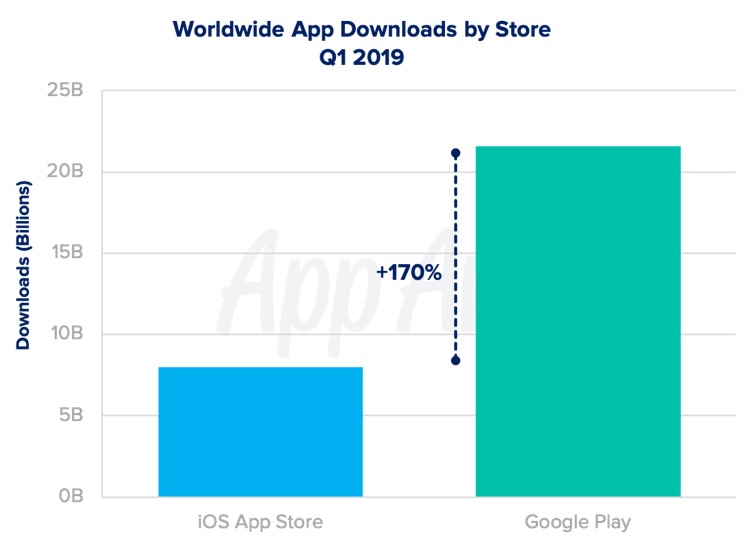 2019 年第 1 季度,在新兴市场的持续增长,车辆和交通以及娱乐类 App 的增长影响下,全球 Google Play 下载量同比增长 10%。