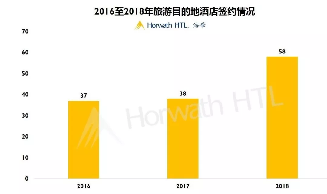 2018年目的地酒店签约数量达到58家,较上年显著增长了53%。随着度假生活方式的普及,国民旅游消费需求旺盛。顺应这一消费大势,城市近郊度假及远途目的地度假酒店开发风生水起。2018年,目的地酒店的签约热点主要集中在拥有独特自然及/或人文禀赋的知名旅游目的地,包括三亚、海口、文昌、九寨、峨眉、黄山、桂林、丽江、张家界等地。我们预计,目的地酒店产品将随着旅游市场的进一步成熟获得长足发展。