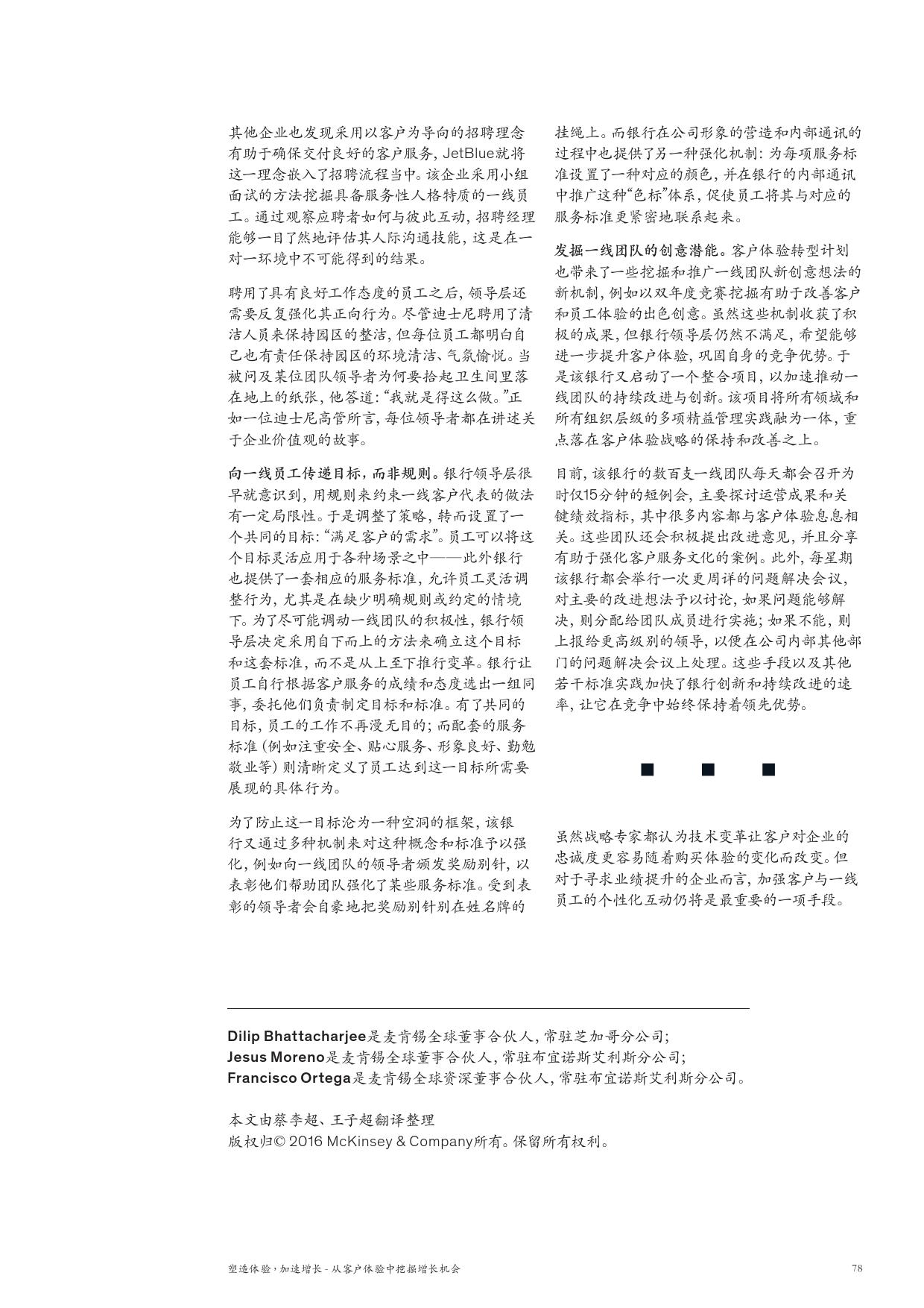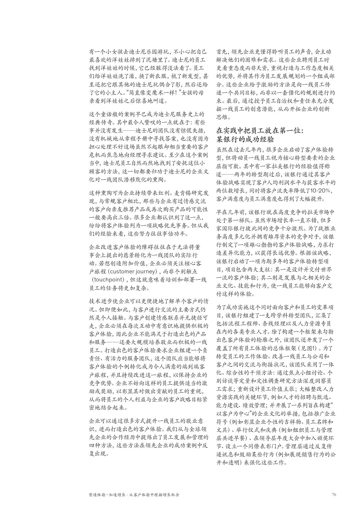 企业改进客户体验的障碍往往在于无法将领导层提出的愿景转化为一线团队的实际行动,因此企业不能满足于打造出色的产品和服务,还要大规模培养敬业而积极的一线员工。