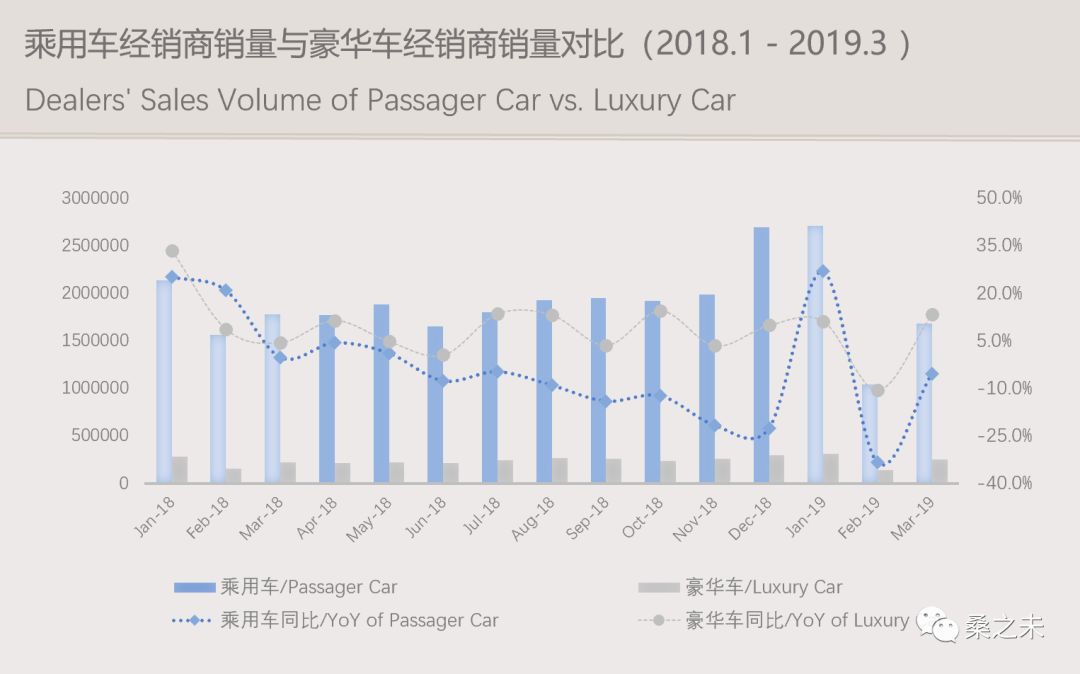 2019年第一季度,国内乘用车经销商零售543万辆,同比下滑0.8%;其中12家豪华车企经销商零售为68.9万辆,同比增长4%。3月份国内乘用车经销商零售168万辆,同比下滑5.4%;12家豪华车企经销商零售为22万辆,同比增长9%。