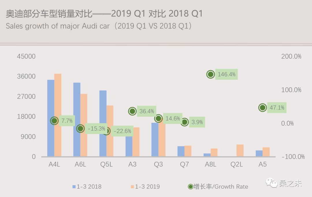 一季度,奥迪新车成交均价为31万元,同比下降8%,主要是受A6L、Q5L销量下滑所致;其中3月奥迪新车成交均价31万元,环比上升3000元。