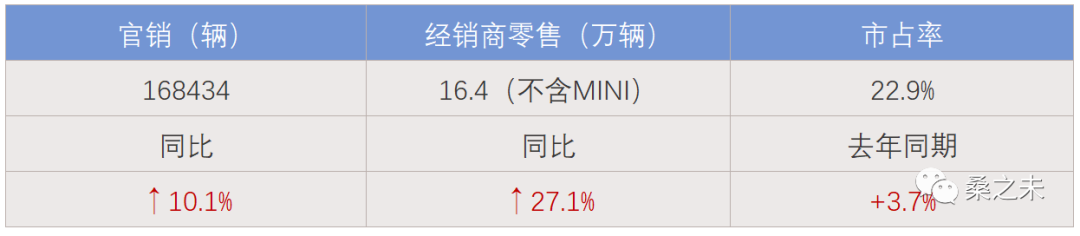 一季度,宝马经销商零售量为17.1万辆,同比增长27.8%。一季度宝马市占率为23%,同比增长3.7个点。