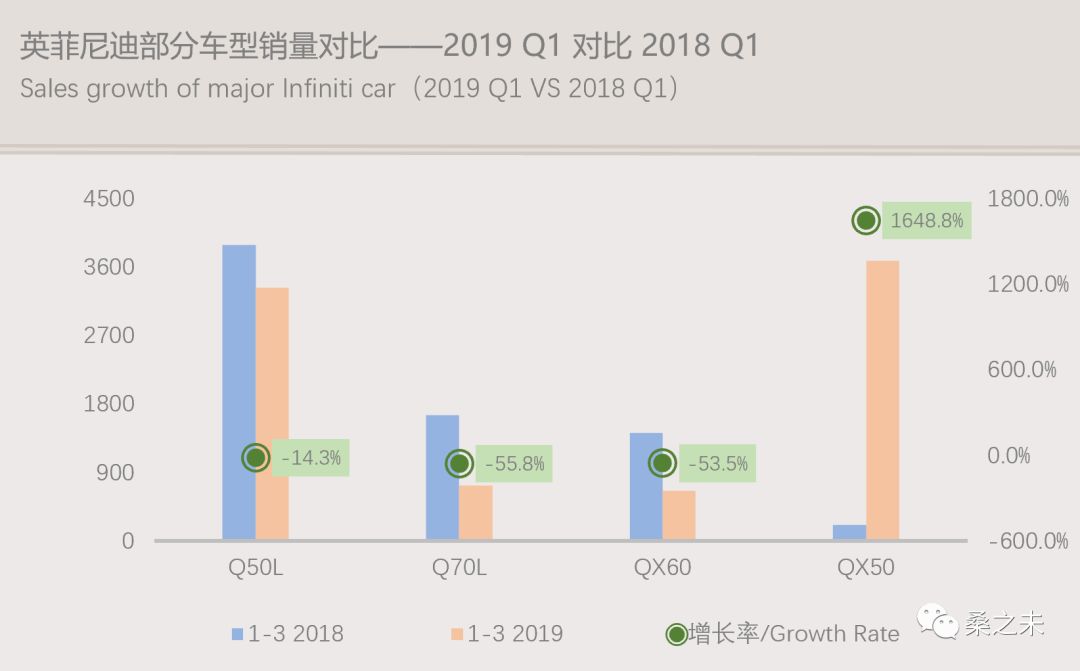 一季度,英菲尼迪经销商零售量9747辆,同比增长14%。经销商库存进一步释放,QX50销量提升较快,同比增长1649%。