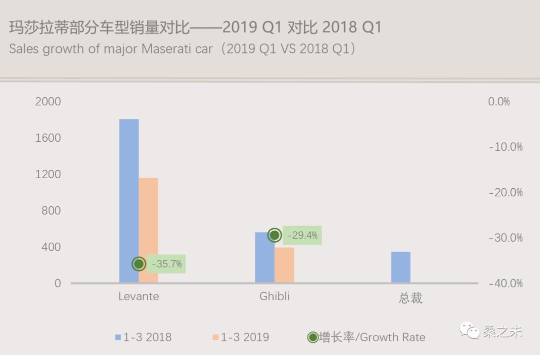 一季度,玛莎拉蒂经销商零售量1800辆,同比下滑34%。经销商去年仅有三家能够盈利,今年经销商对完成批售任务并不积极。