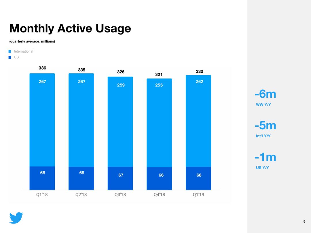 受清理僵尸和SPAM账号的影响,Twitter月活跃用户同比仍然下滑,但环比已经有所上升。