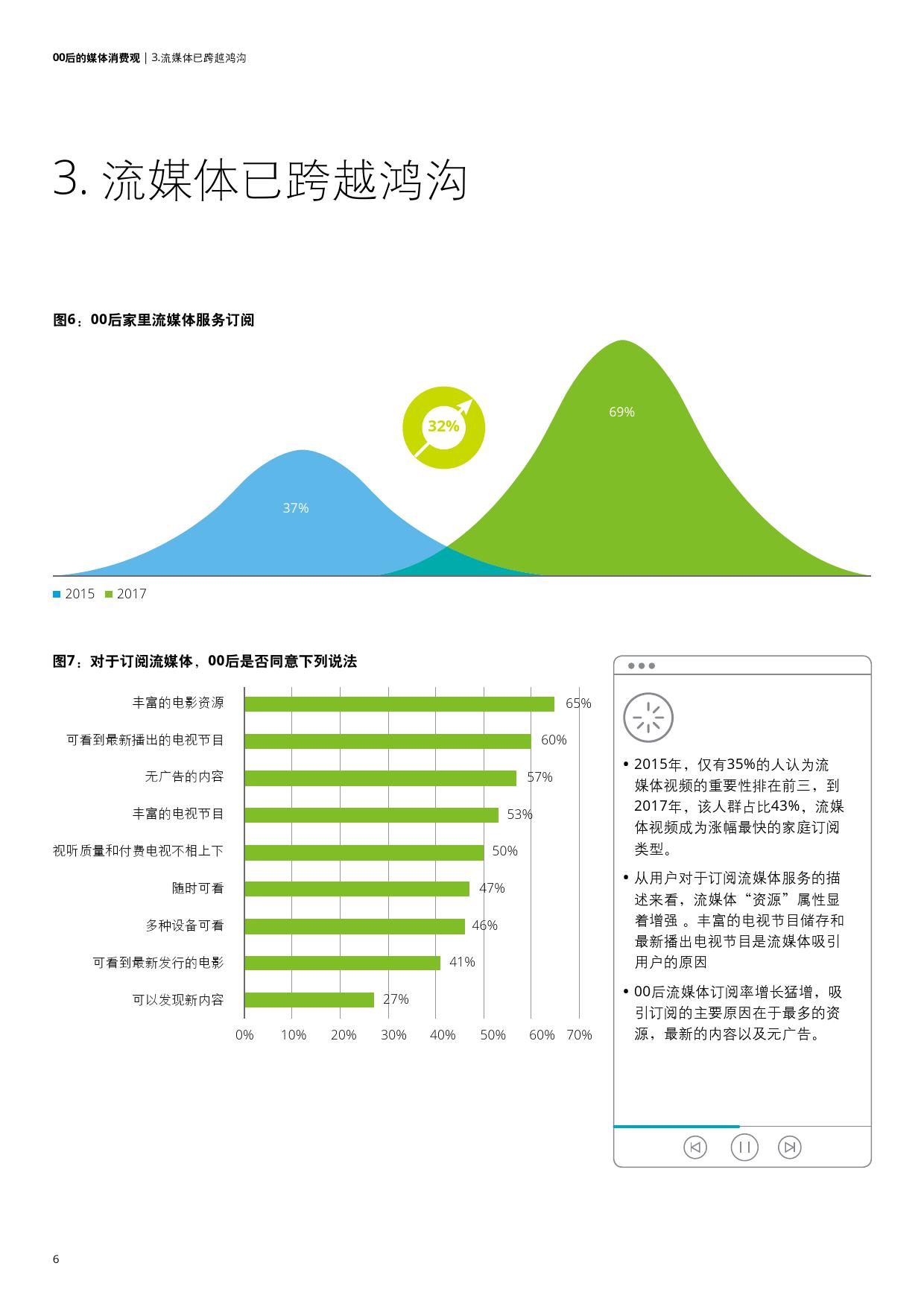 - 流媒体已跨越鸿沟,成为涨幅最快的家庭订阅类型。流媒体“资源”属性显著增强。丰富的电视节目储存和最新播出的电视节目是流媒体吸引用户的原因。