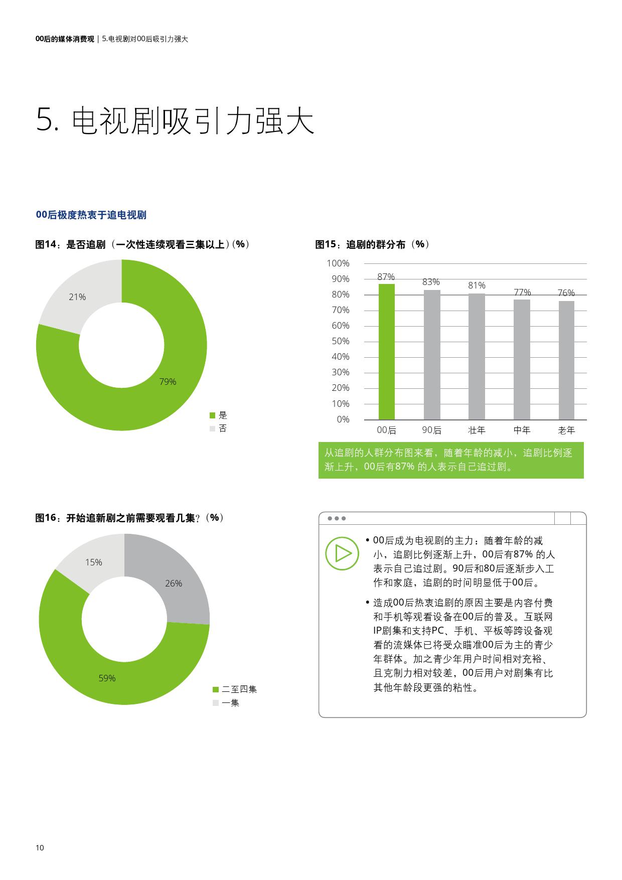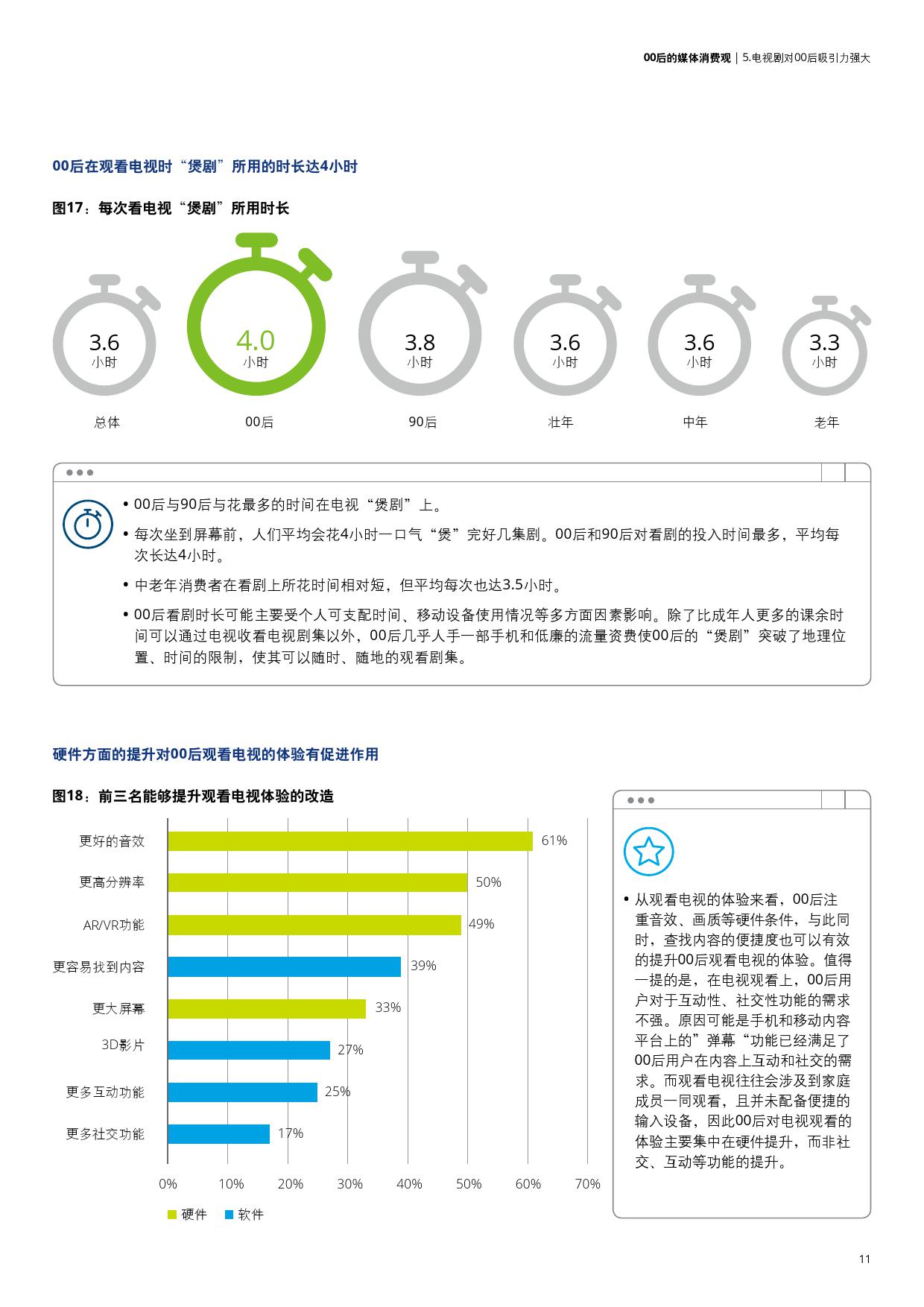 - 00后作为“煲剧”主力军, 每次观看电视“煲剧”所用时长达4小时。