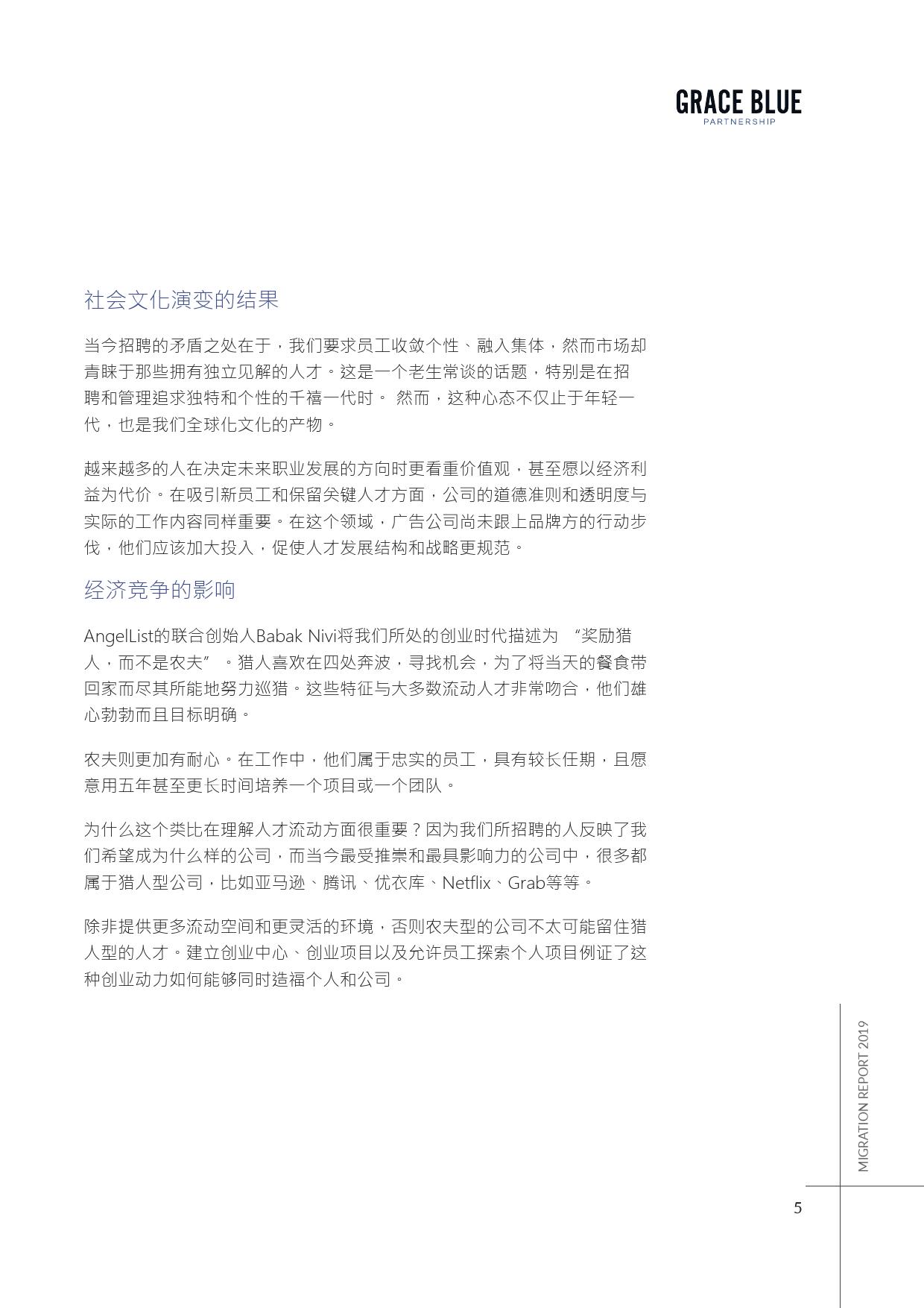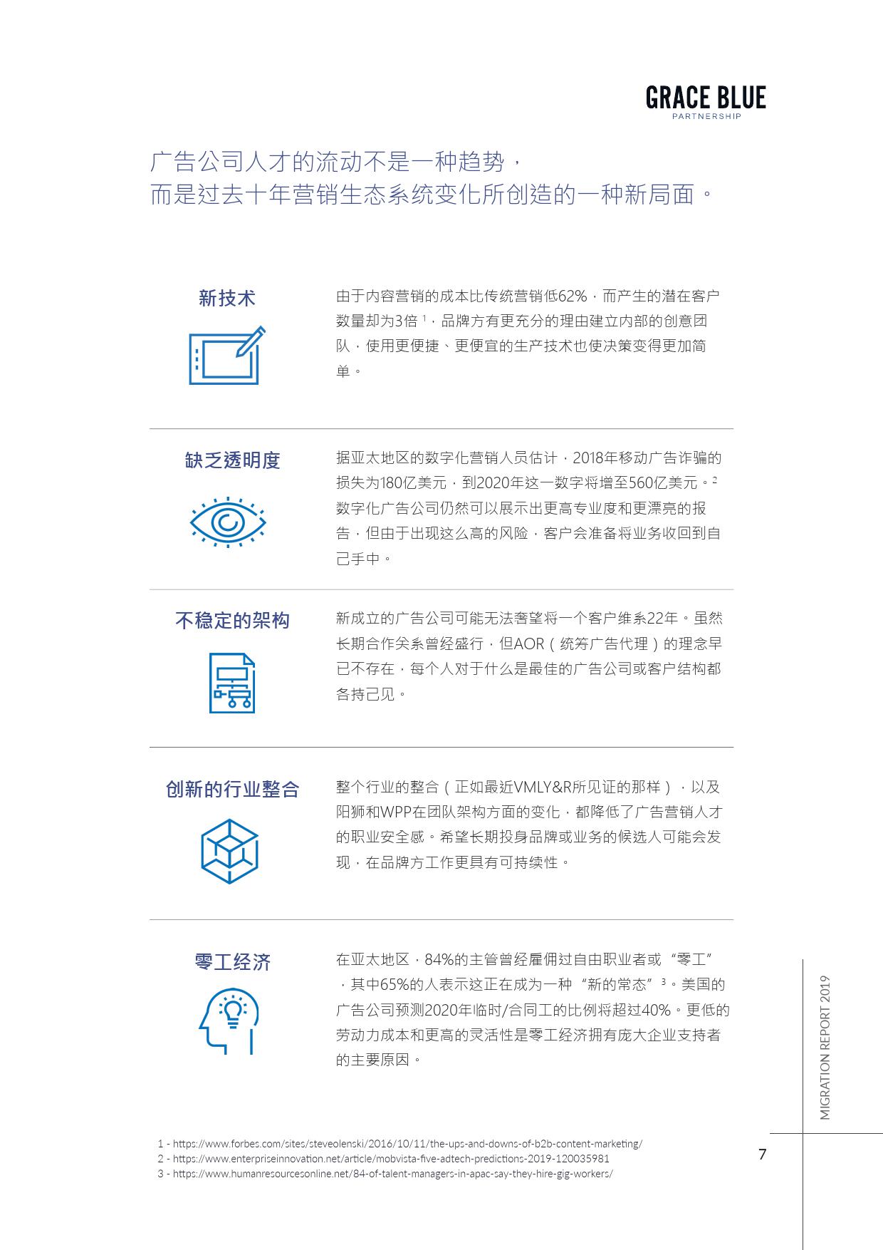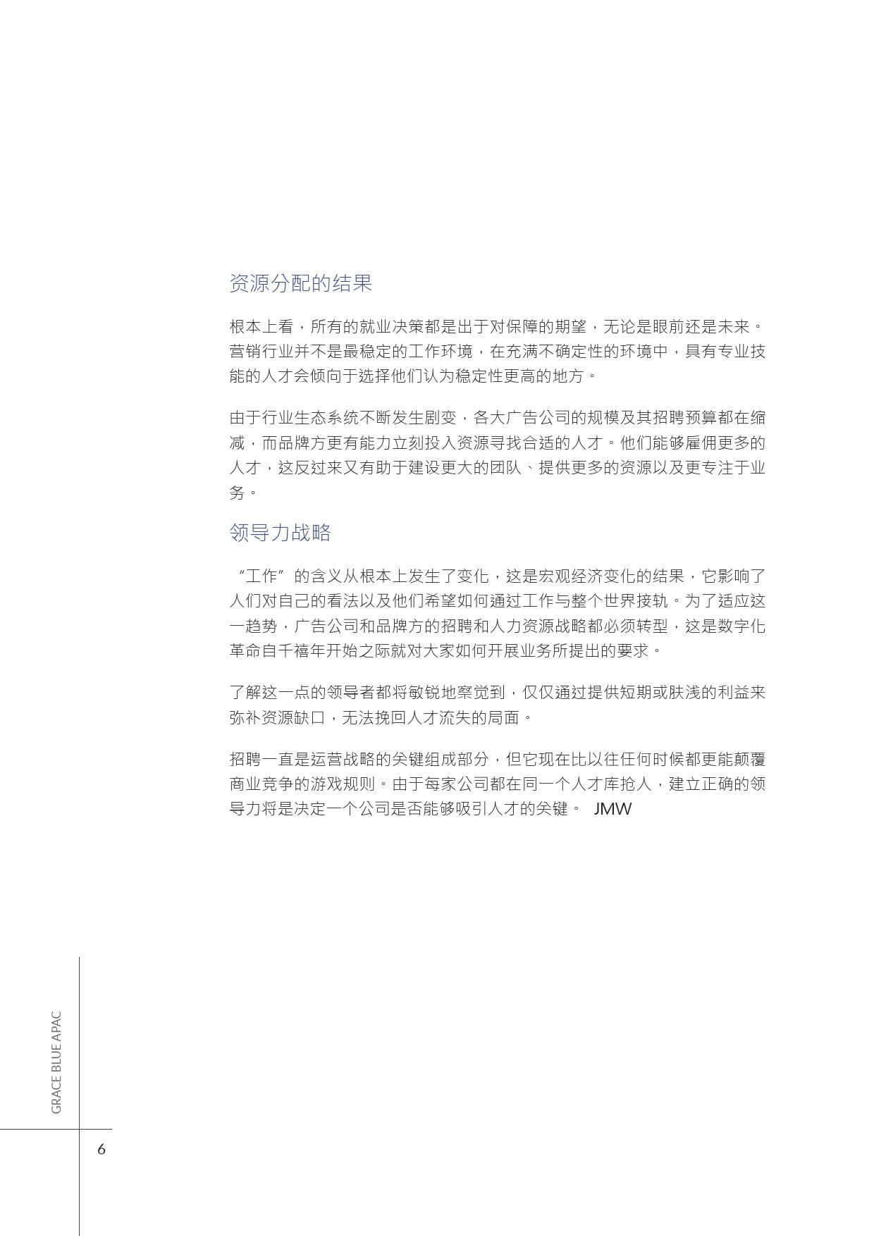 Grace Blue在本月发布的《2019亚太区人才流动报告》揭示了广告人才从广告公司向品牌方流动的一些共性原因。报告显示,资历更深的广告人才普遍更重视工作生活的平衡以及有没有机会做更有意义的工作。