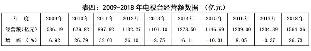 总览近七年电视广告数据,2018年电视对整体广告经营收入的贡献再创新高(见表四)。除上述原因之外,可能还要归功于电视人的不懈努力,内容营销渐入佳境。采取“中央厨房”类似战术的内容采编革新,能较大程度上对以往条块状的内容进行有效整合,以此降低采编成本、渠道成本的同时,实现内容的一鱼多吃,资源的聚合与统一。这种调整改变了电视台以往以节目为单位的售卖形式,改善了资源出售方面的计划性安排。实现了“定制化、套餐化和实时化”的售卖,为电视广告的价值变现,提供了比较好的通路。