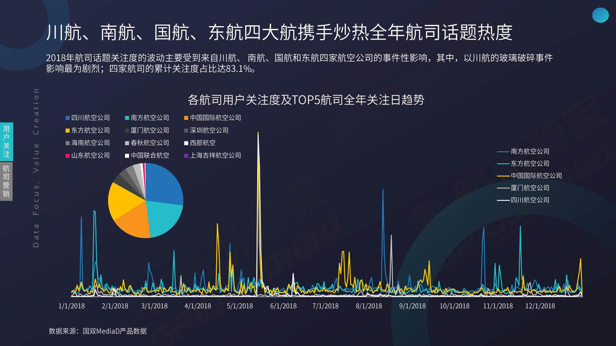 - 川航、南航、国航、东航四大航携手炒热全年航司话题热度,累计关注度占比达1%;