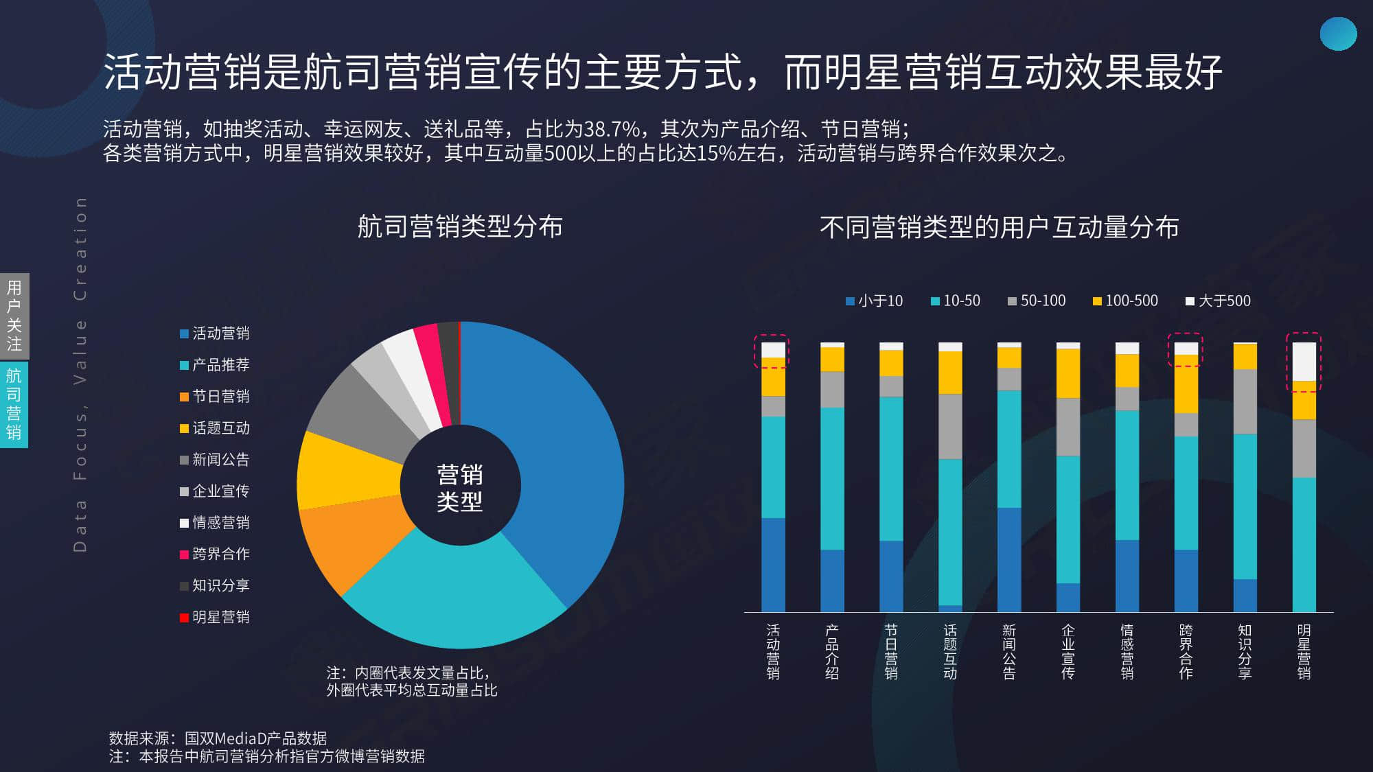 - 航司营销宣传的主要方式是活动营销,明星营销互动效果最好;