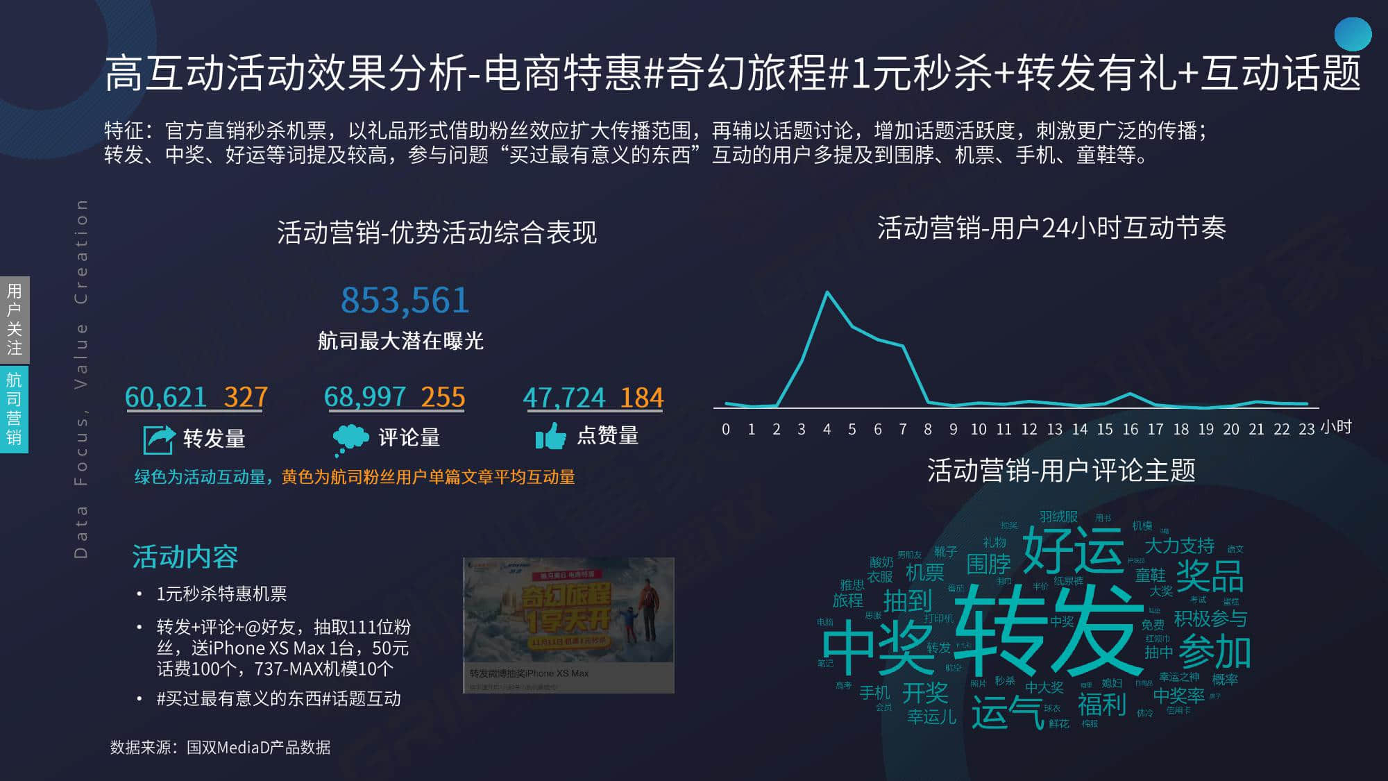 三、用户关注内容及航司营销分析:川航引爆全年航司话题高潮,活动营销备受各航司关注。