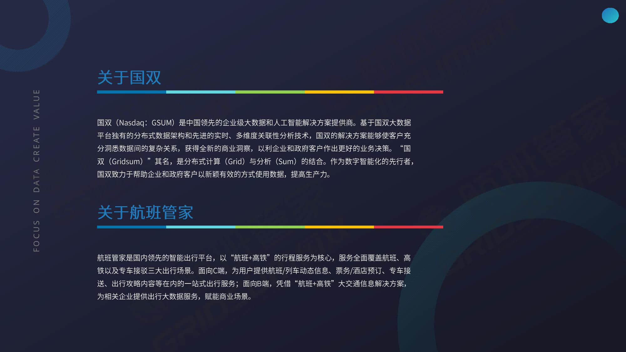 2019年4月28日,国双携手航班管家共同发布《2018年中国民航旅客发展趋势洞察报告》,基于航班管家积累的民航相关数据、国双爬取舆情数据及调研数据,全面研究了航空客运市场、中国旅客在全球的飞行习惯及行为偏好、航司的营销方式,为航空公司、旅行社、个人出游消费者等相关人群提供参考资料。