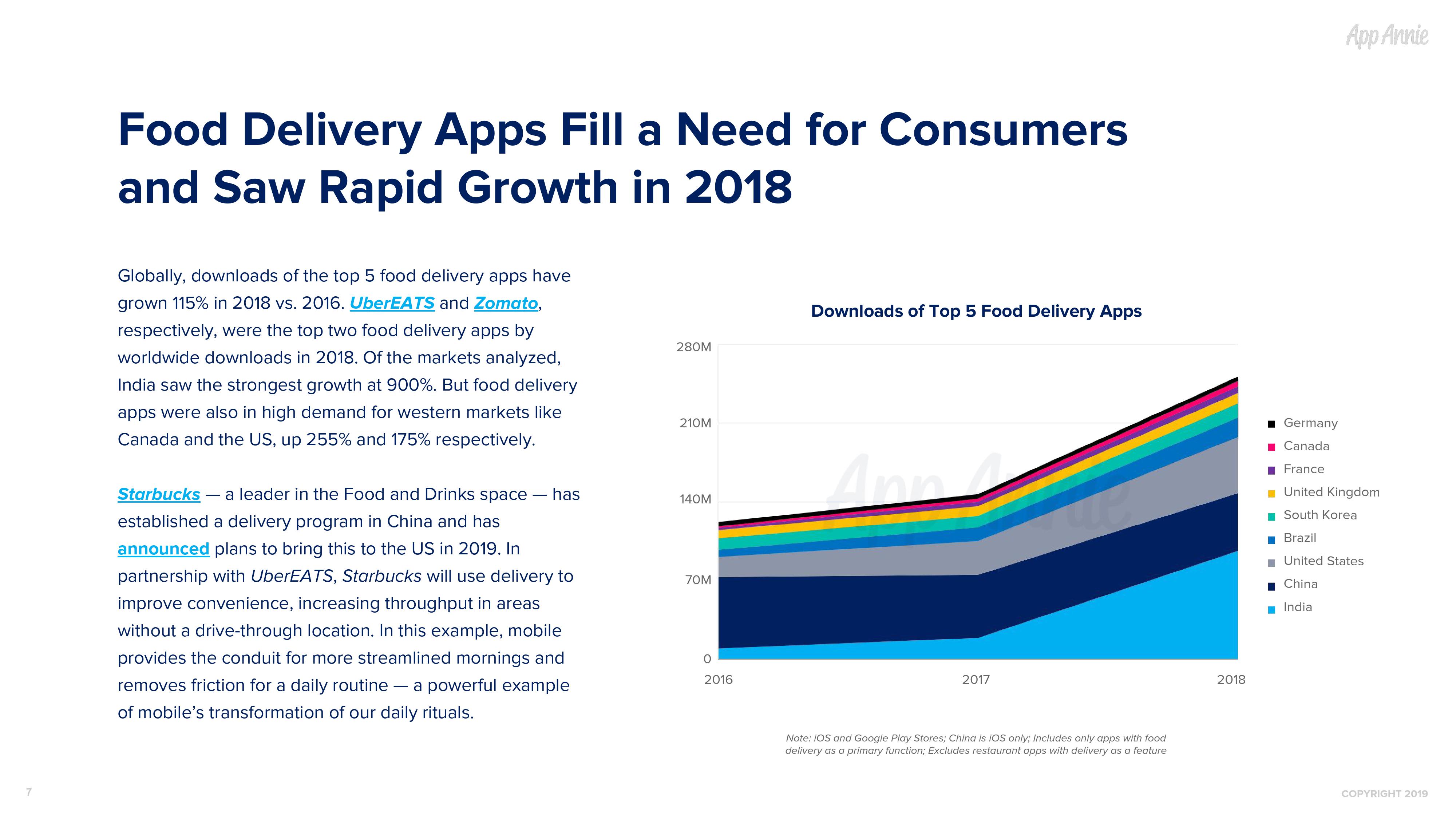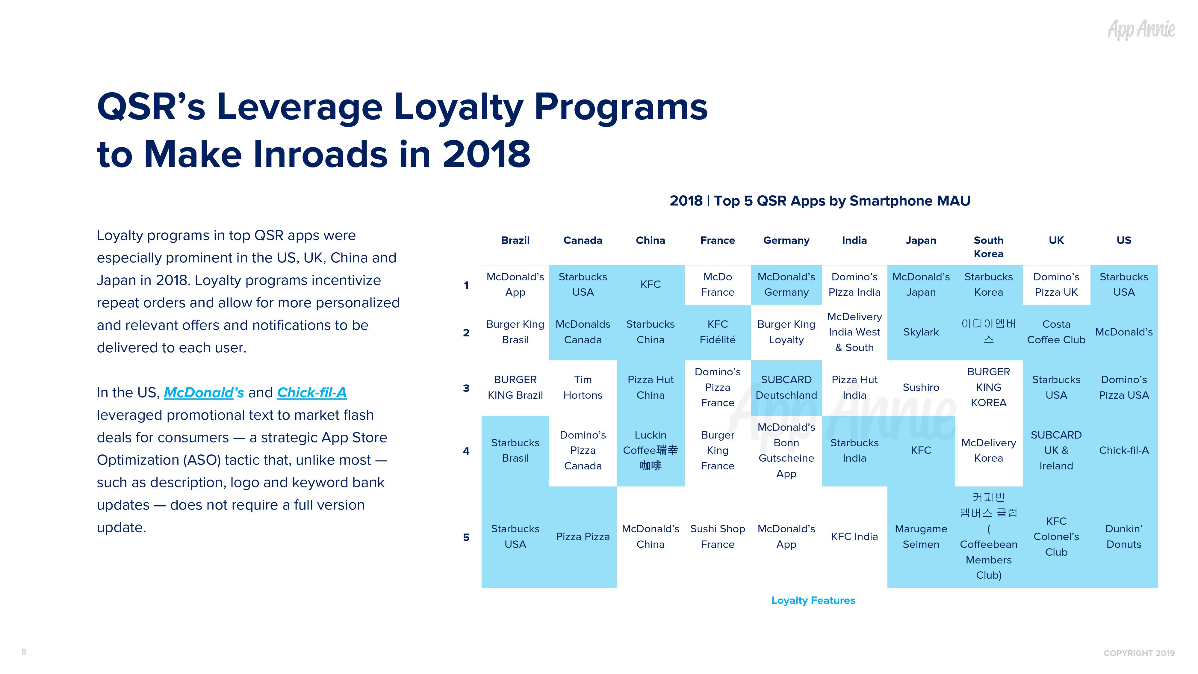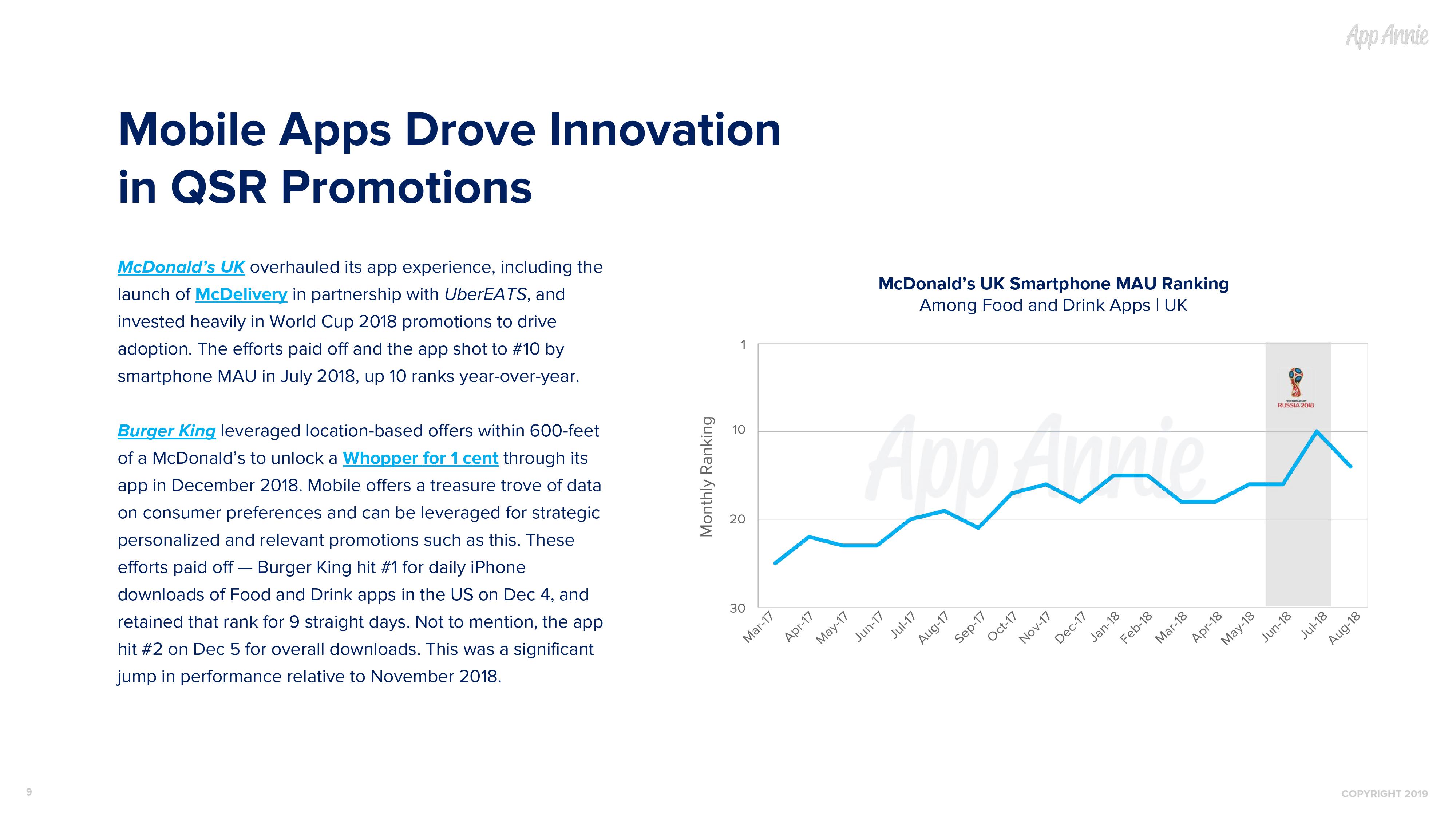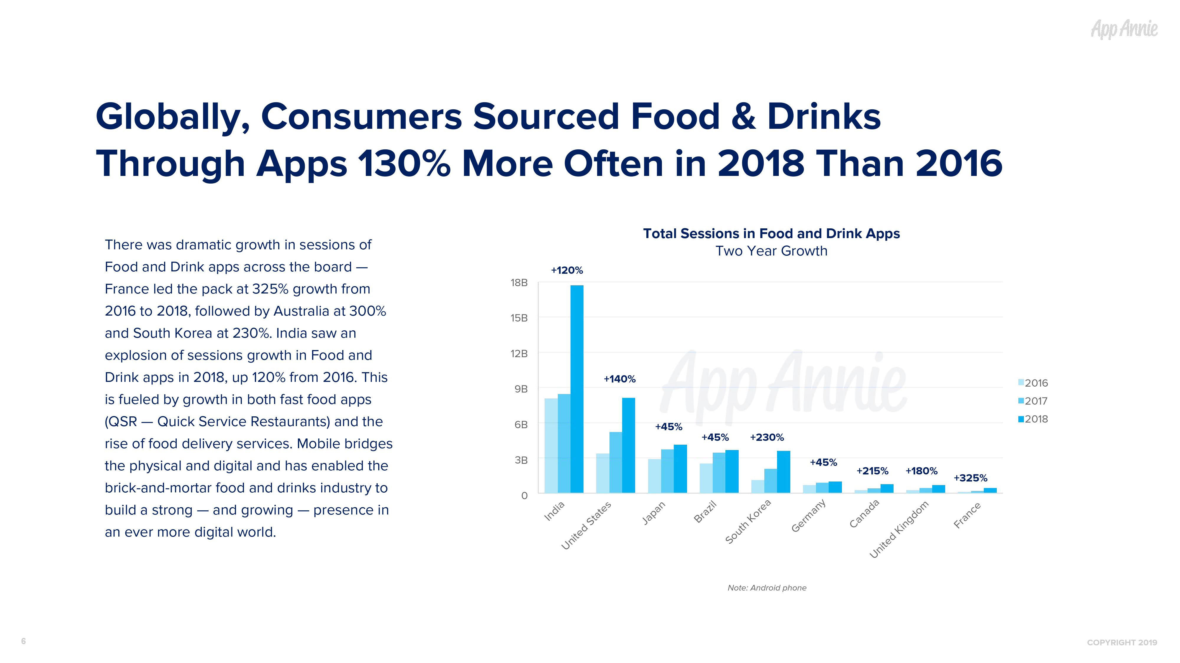 随着快餐和外卖业务量的持续攀升,移动将发挥日益重要的作用,不断吸引客户并为客户留下深刻的印象,最终提高客户忠诚度。2019 年,我们预计这个领域仍将继续发展并占据移动创新的前沿,满足我们的好奇心和味蕾需求。