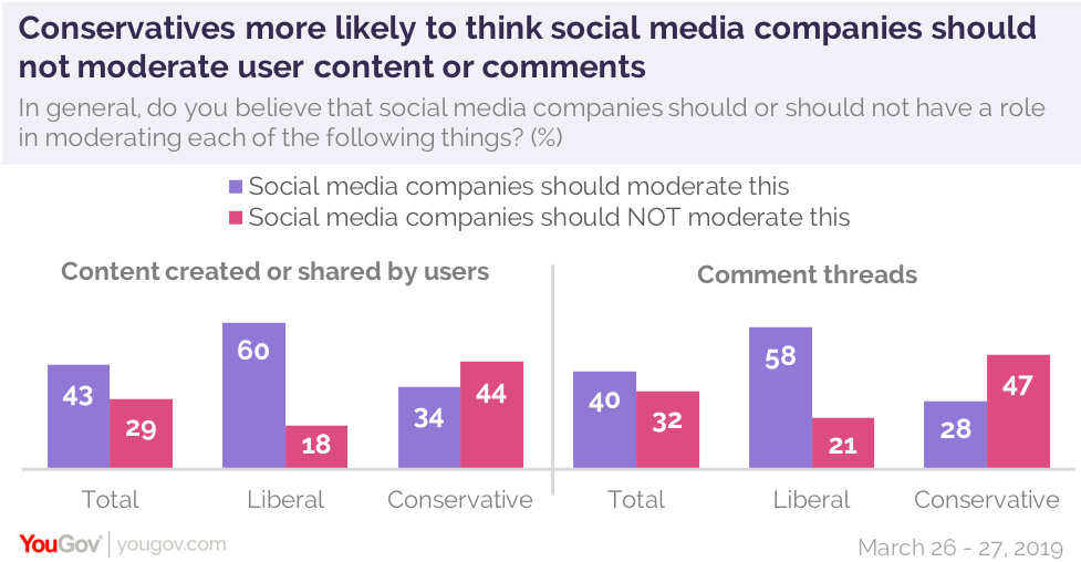 YouGov的新研究发现,尽管许多美国人认为社交媒体公司应该在调节用户内容方面发挥作用,但很多人担心这样做会侵犯言论自由。