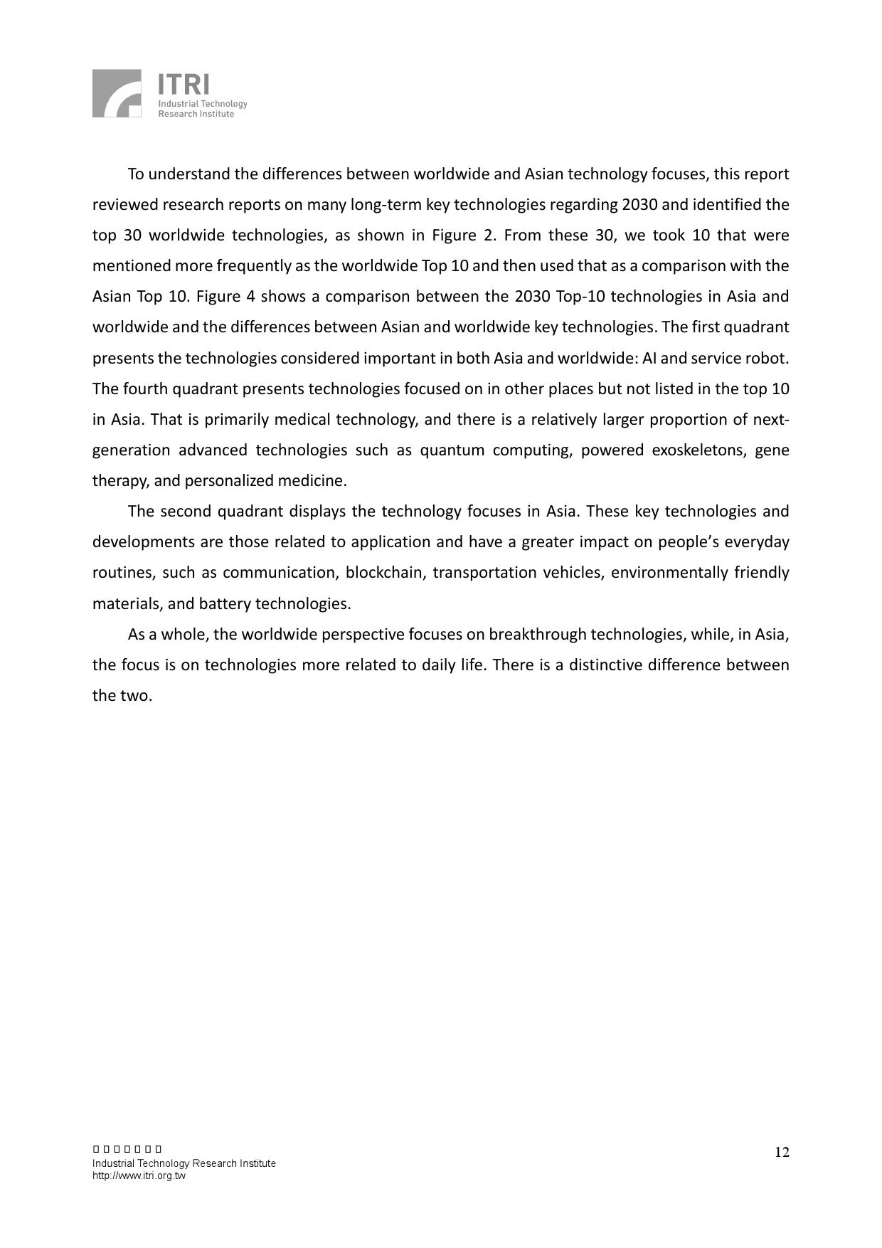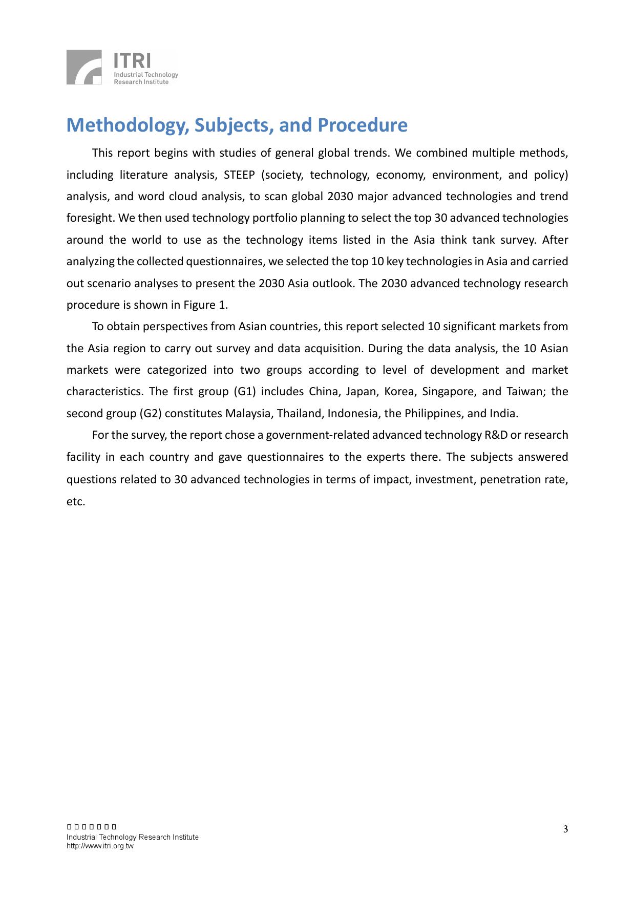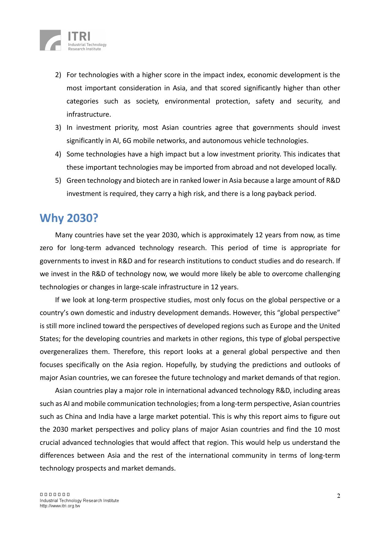为了识别出这十大技术,位于台湾新竹的工研院产业科技国际策略发展所选择了10个重要市场进行了调查和数据采集。受访者在影响、渗透率和投资优先级等方面回答了与先进技术相关的问题。