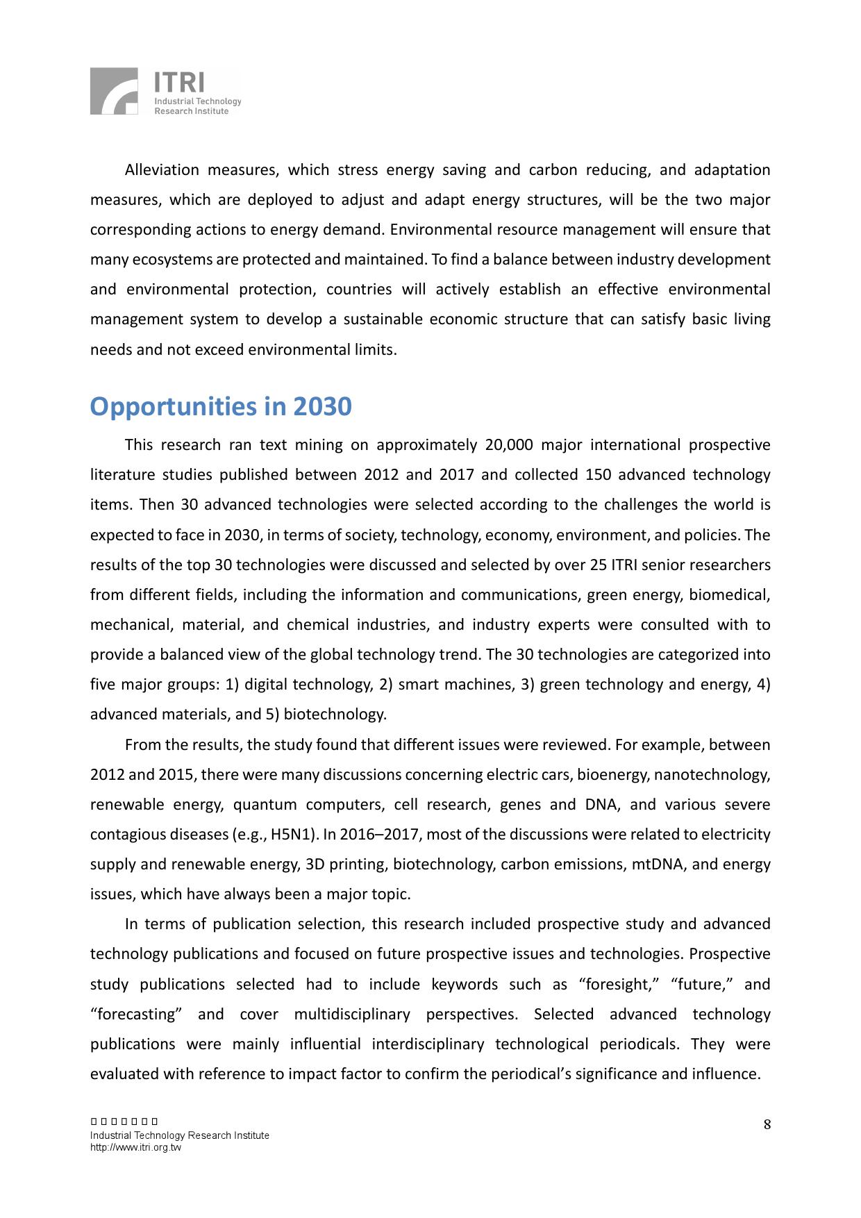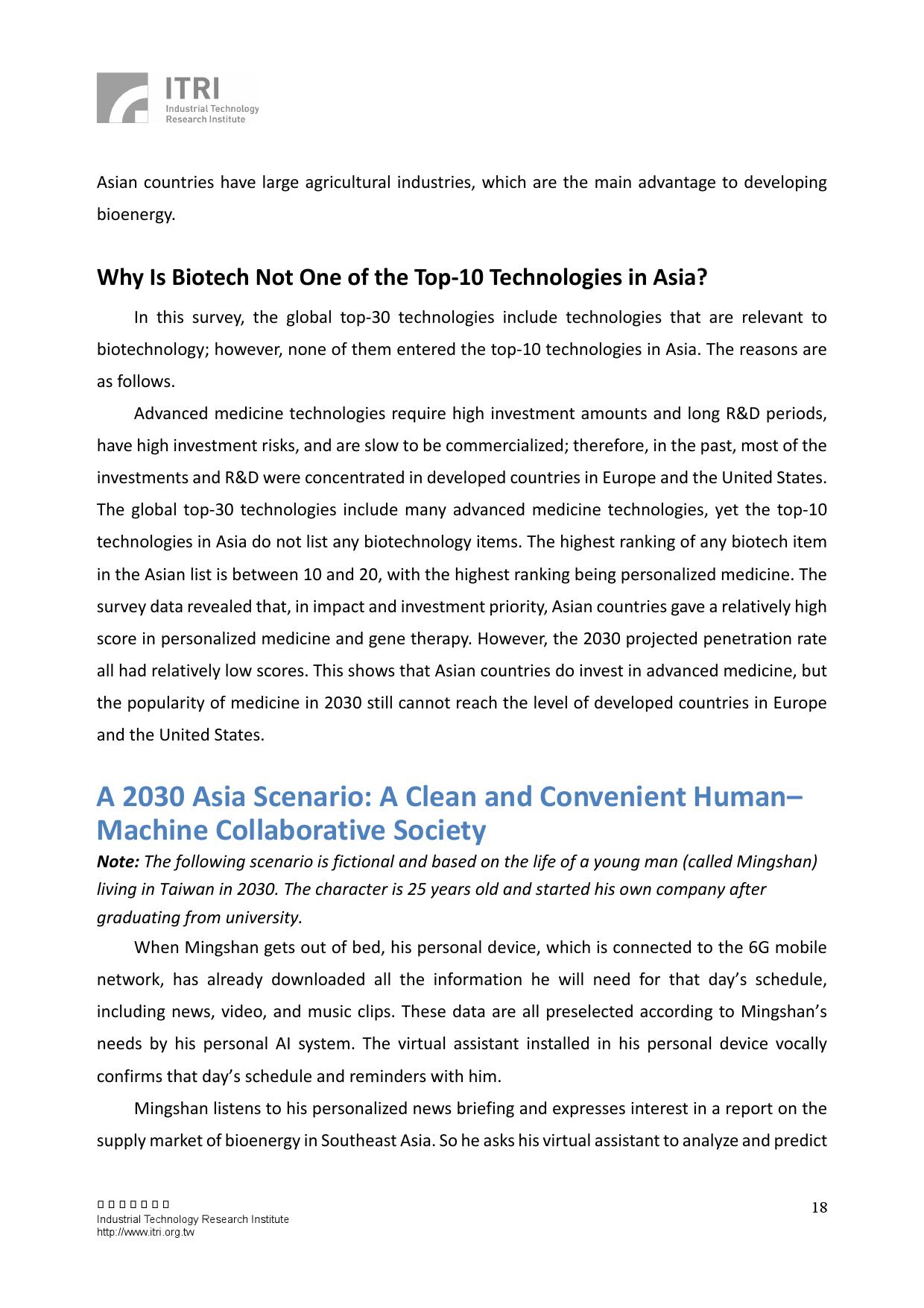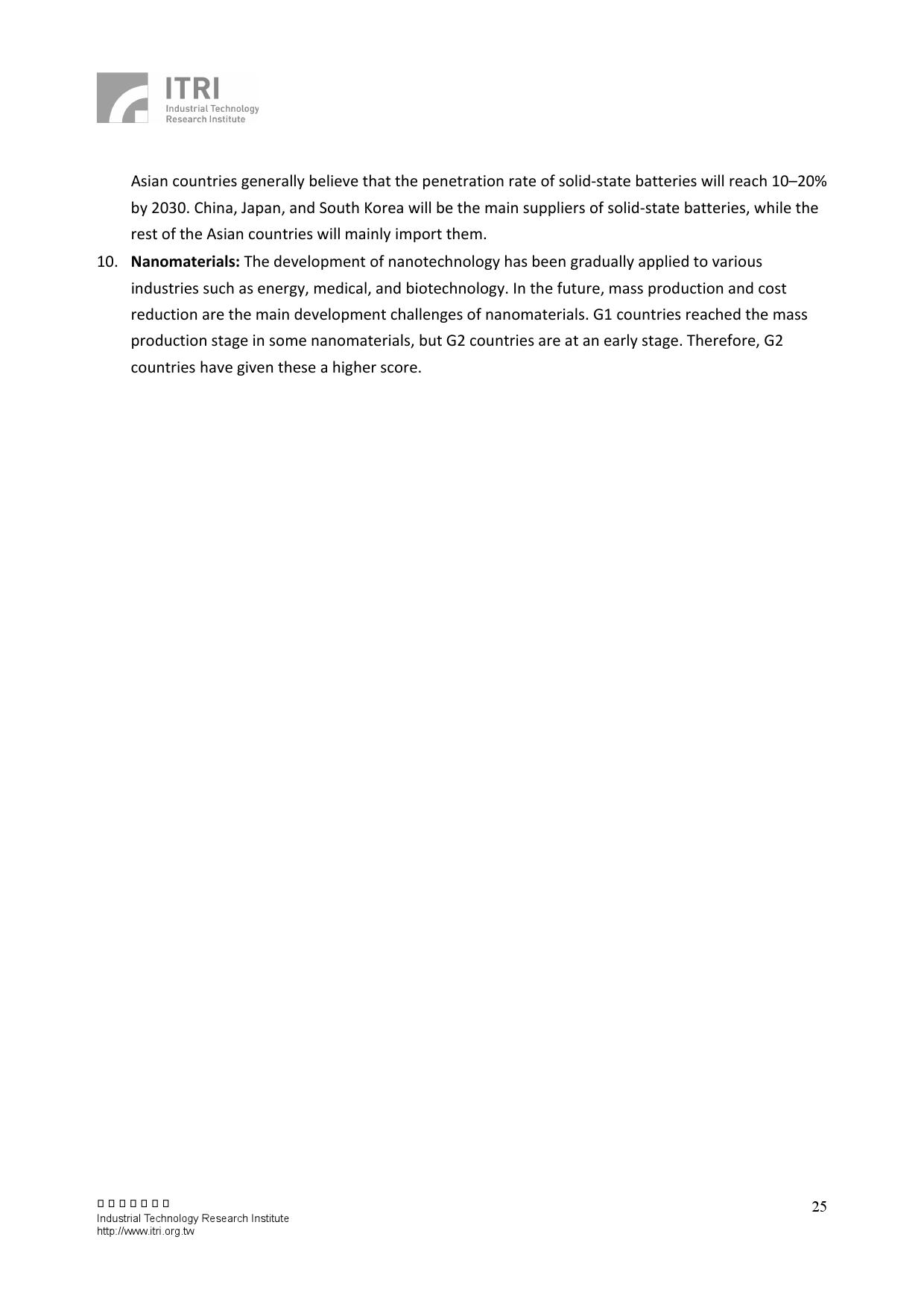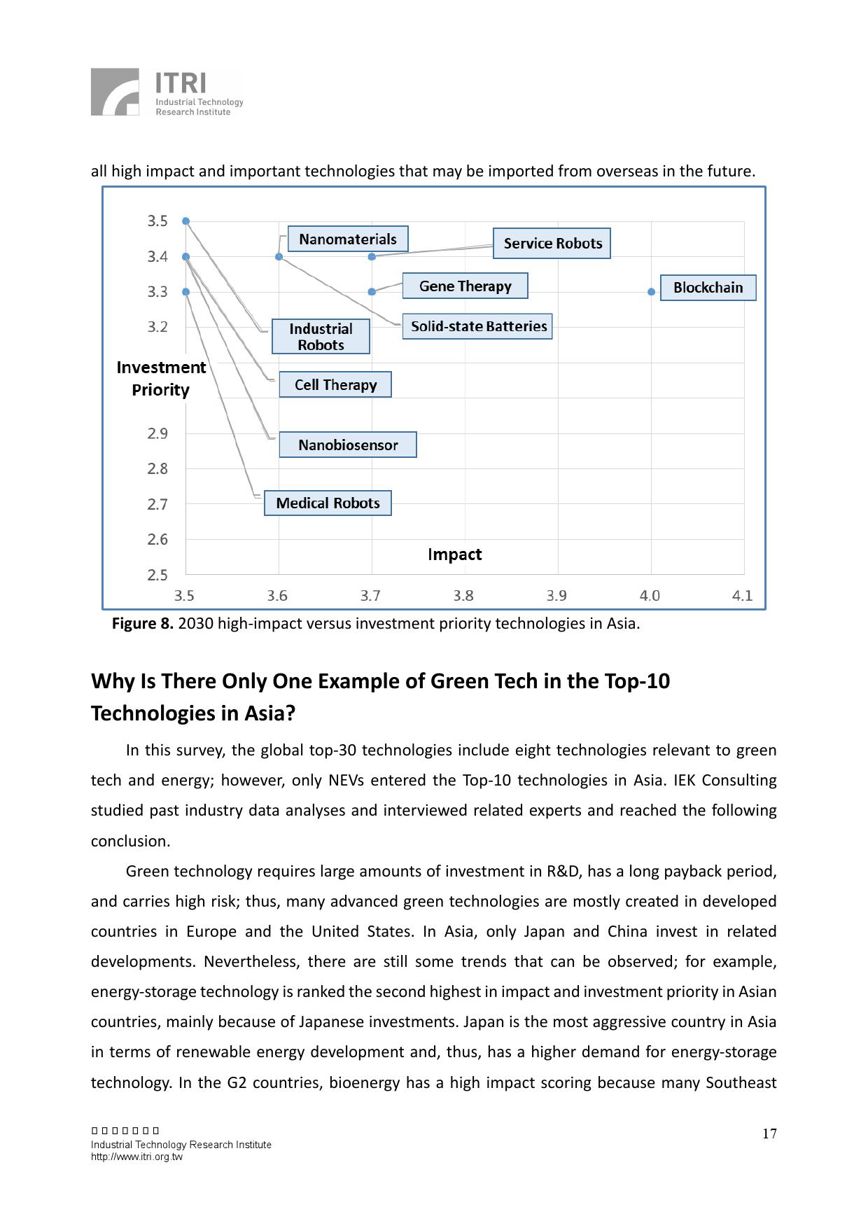 为了识别出这十大技术,位于台湾新竹的工研院产业科技国际策略发展所选择了10个重要市场进行了调查和数据采集。受访者在影响、渗透率和投资优先级等方面回答了与先进技术相关的问题。