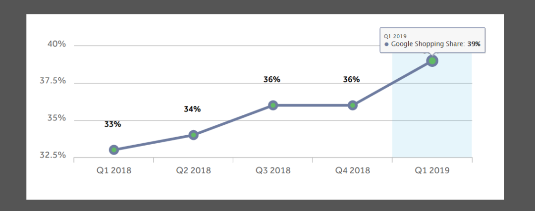 另外,就搜索而言,购物广告已经占到谷歌广告收入的 39%,这表明效果营销在进一步推动零售业发展,这也是亚马逊不断在加码广告业务的原因。即使收入占比已经很高,但数据显示只有 22% 的广告主在使用购物广告,这说明少量的大型广告主已经在推动谷歌购物广告业务快速发展。